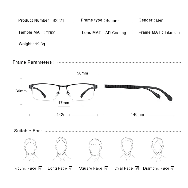 Оправа для очков Мужскаяженская из титанового сплава , S2252