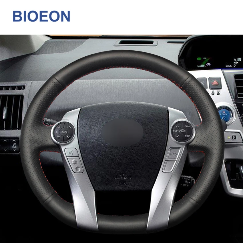 Ручная стежка черная искусственная кожа PU чехол на руль для Toyota Prius 30(XW30) 2009-2015 Prius + Prius C Prius V Aqua