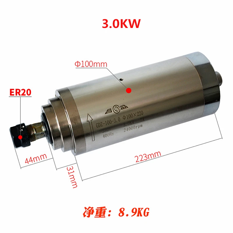 Двигатель шпинделя с ЧПУ 800 Вт 1,5 кВт 2,2 кВт ER11 ER20, цанговый шпиндель 24000 обмин с ЧПУ 3 кВт с водяным охлаждением 220 В 380 В для гравировального станка с ЧПУ