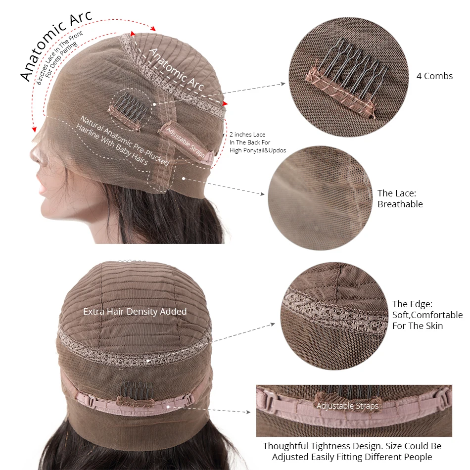 Парик из натуральных волос 13X6 HD без клея, плотность 180 250