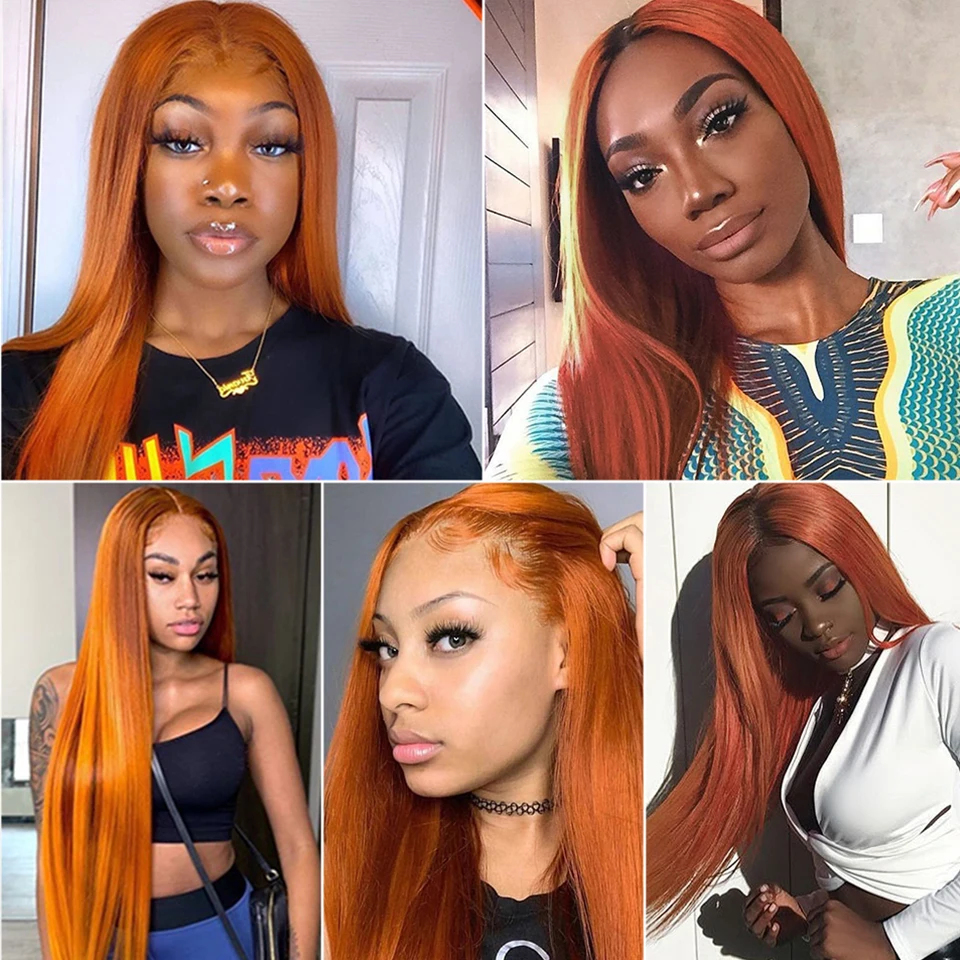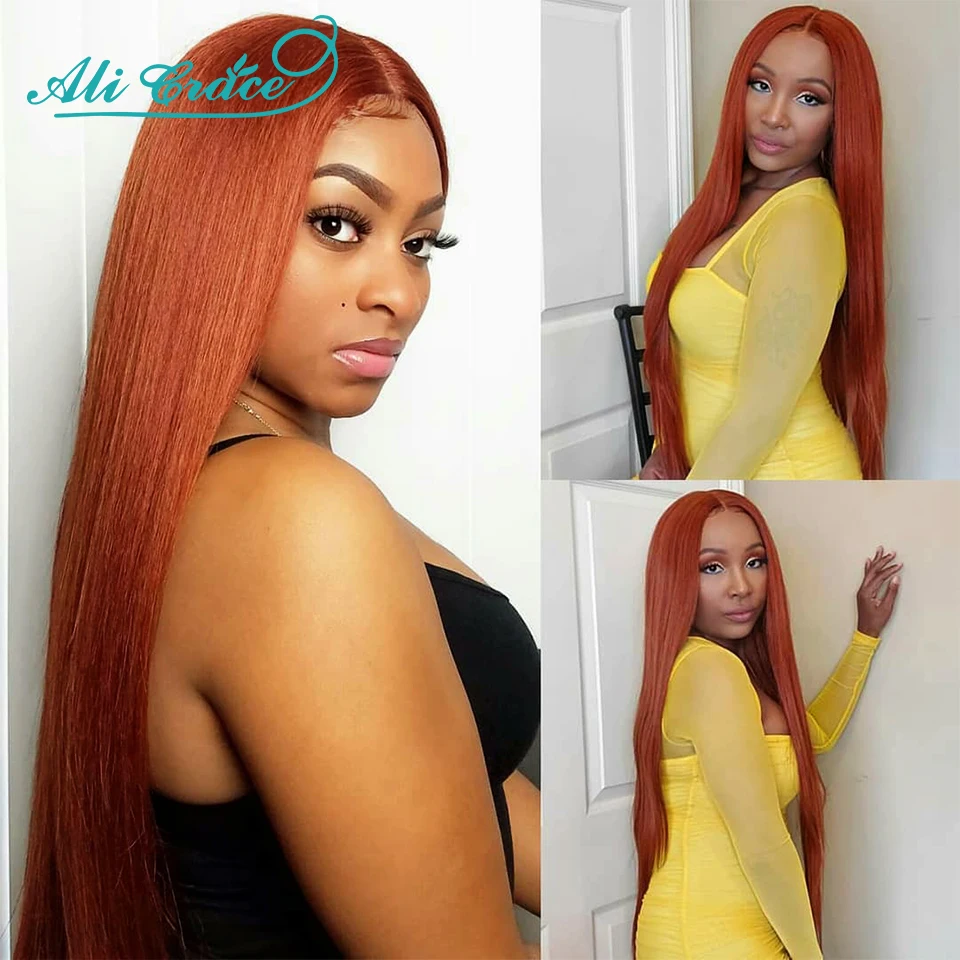 Имбирный оранжевый 4x4 парик с детскими волосами, бразильские прямые человеческие волосы, парики Ali Grace, прямые кружевные передние парики для женщин