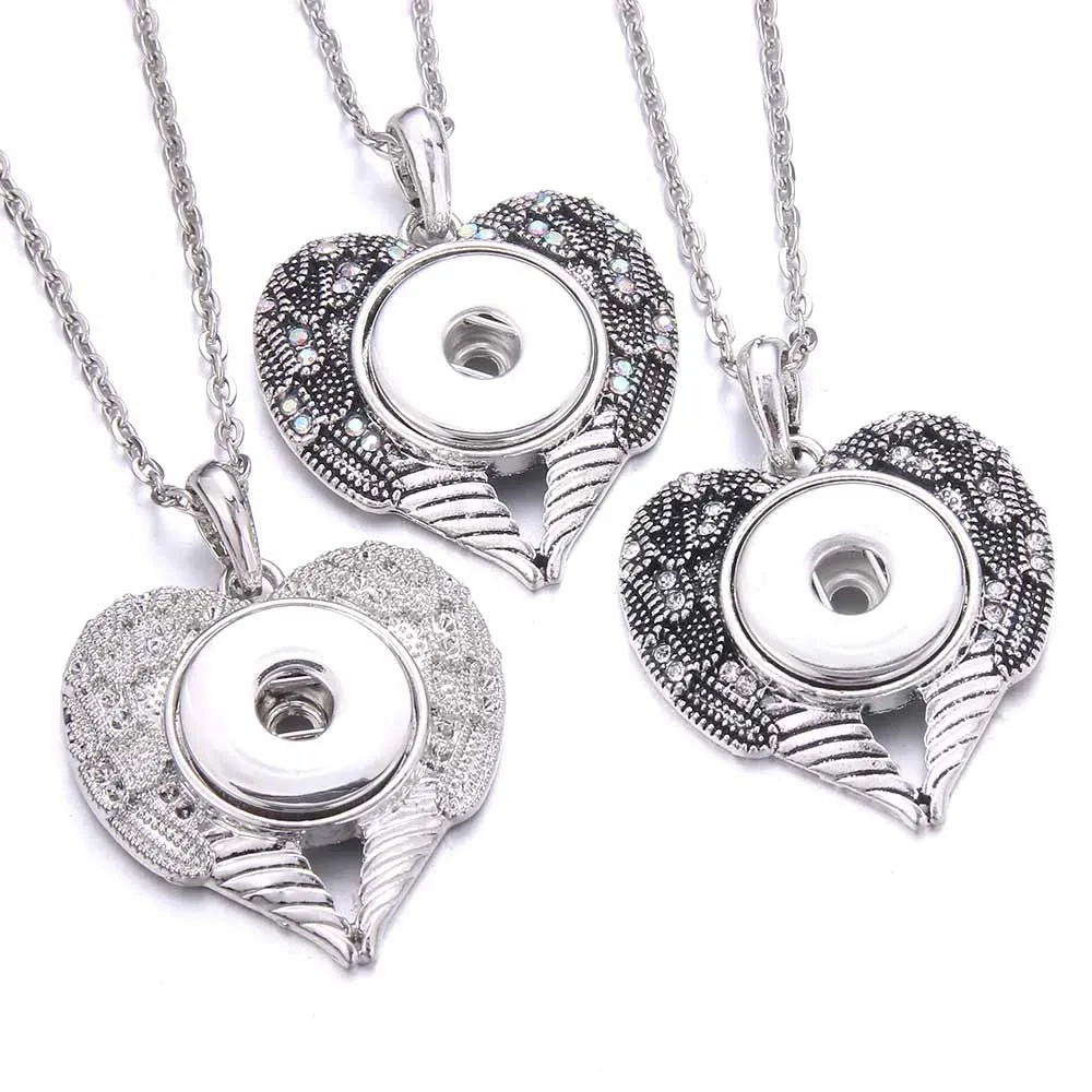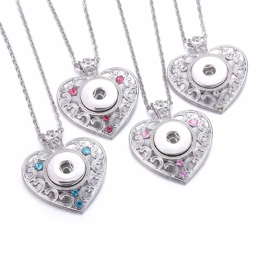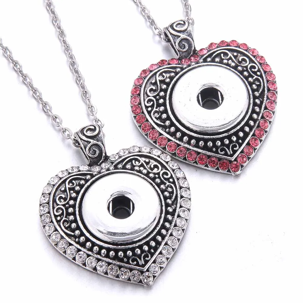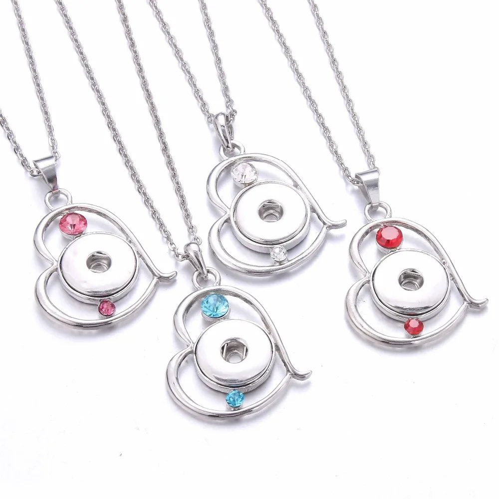 Ювелирные ожерелья с кнопками, стразы, Кристалл, сердце, ожерелье, подходит для DIY, 20 мм, 18 мм, ювелирные застежки-пуговицы, подвески