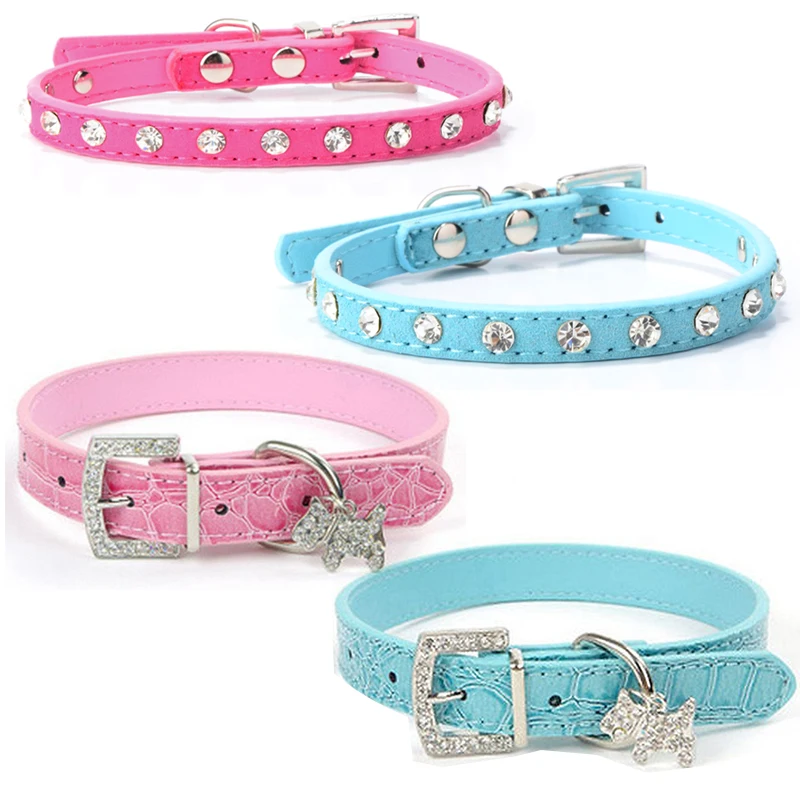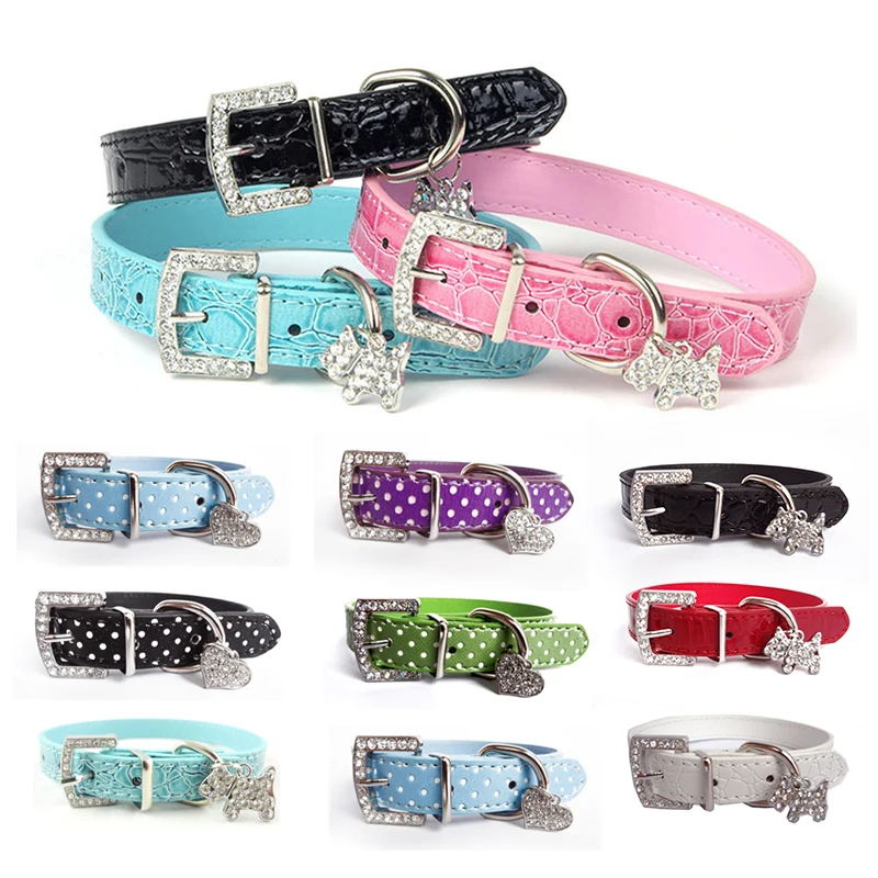 Ошейник для питомца из искусственной кожи, стразы с кристаллами, регулируемый ошейник для щенков, поводок для маленьких и средних собак, товары для домашних питомцев