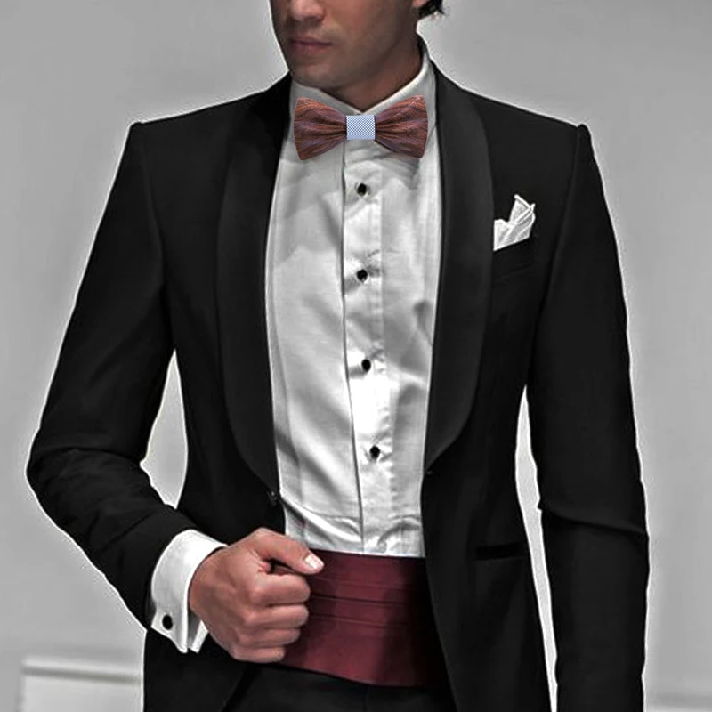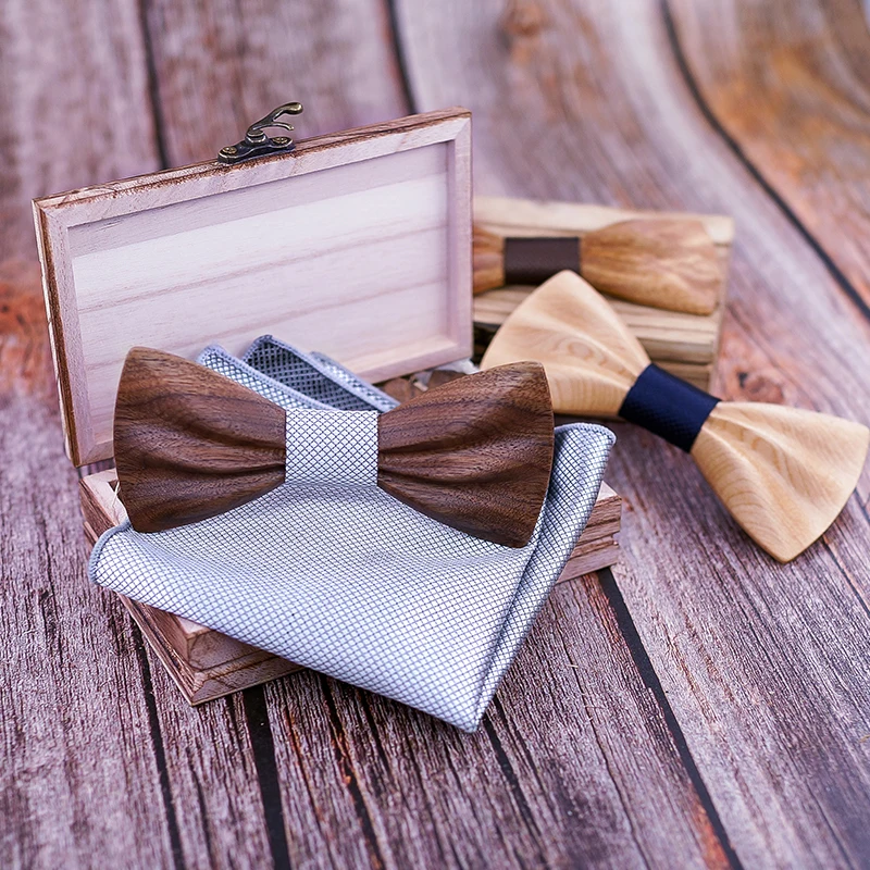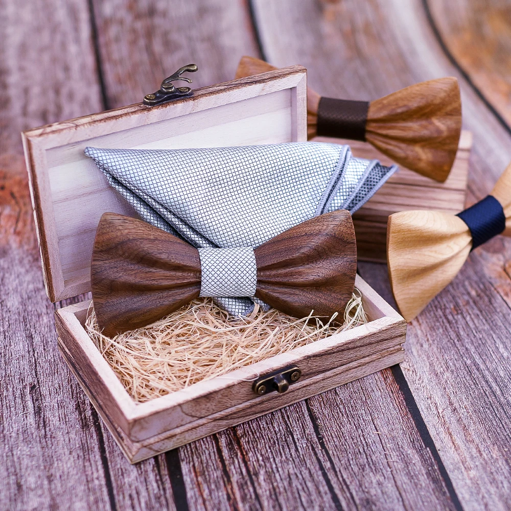 Новый дизайн, деревянный галстук-бабочка для свадьбы, твердый клетчатый Карманный квадратный запонок, брошь, галстук-бабочка, набор для костюма, мужские галстуки