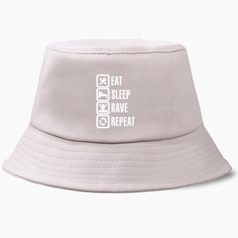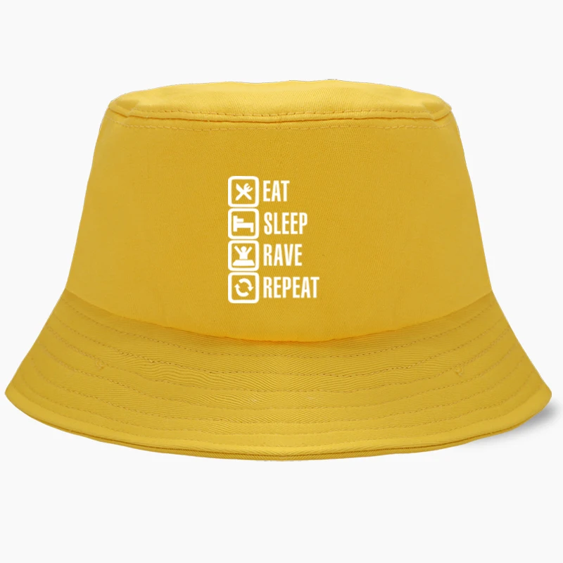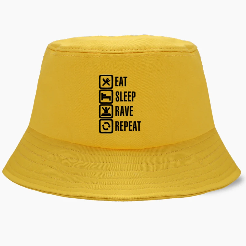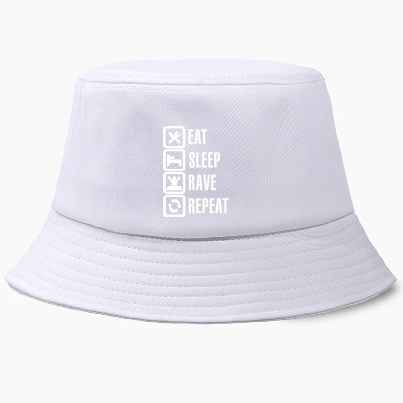 Eat Sleep Rave Repeat, забавные шляпы-ведра с Бобом, летняя мужская Панама, женская шляпа в рыбацком стиле, хлопковая Корейская Черная кепка в стиле хип-хоп, пляжная кепка