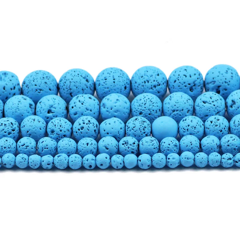 WLYeeS бусины из лавового камня голубого цвета с натуральным камнем 4, 6, 8, 10, 12 мм круглые свободные бусины для женщин ювелирные аксессуары для изготовления браслетов своими руками