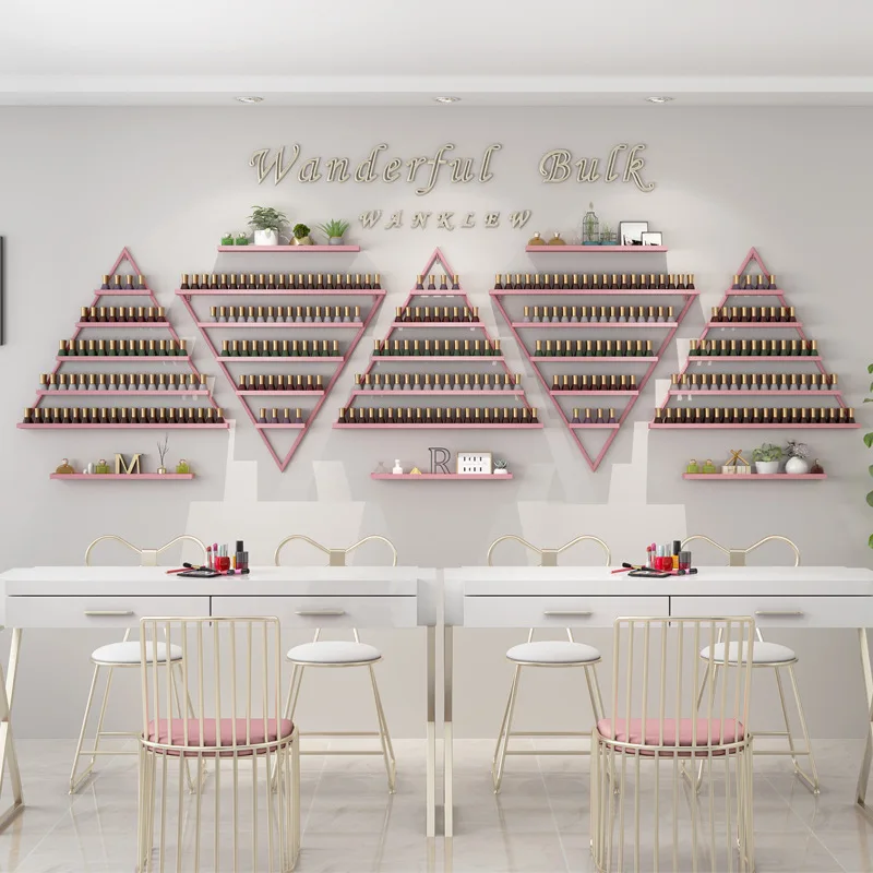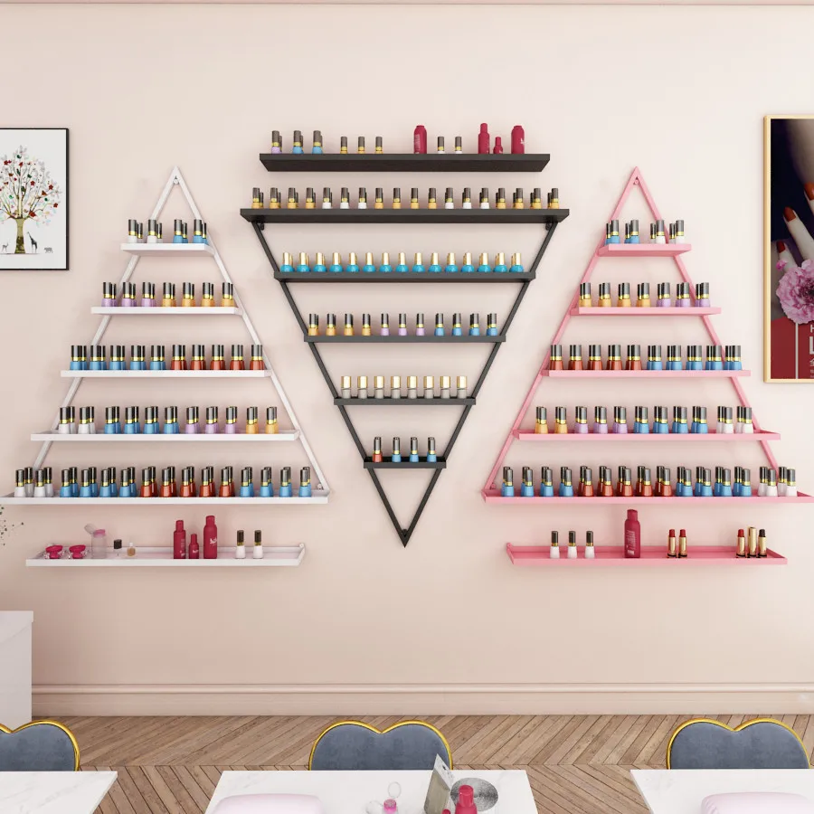 Полки для маникюра, настенные вешалки, треугольные, для УФ-лака, полки для косметики, выставочные украшения, органайзер для витрины полка для хранения на стене