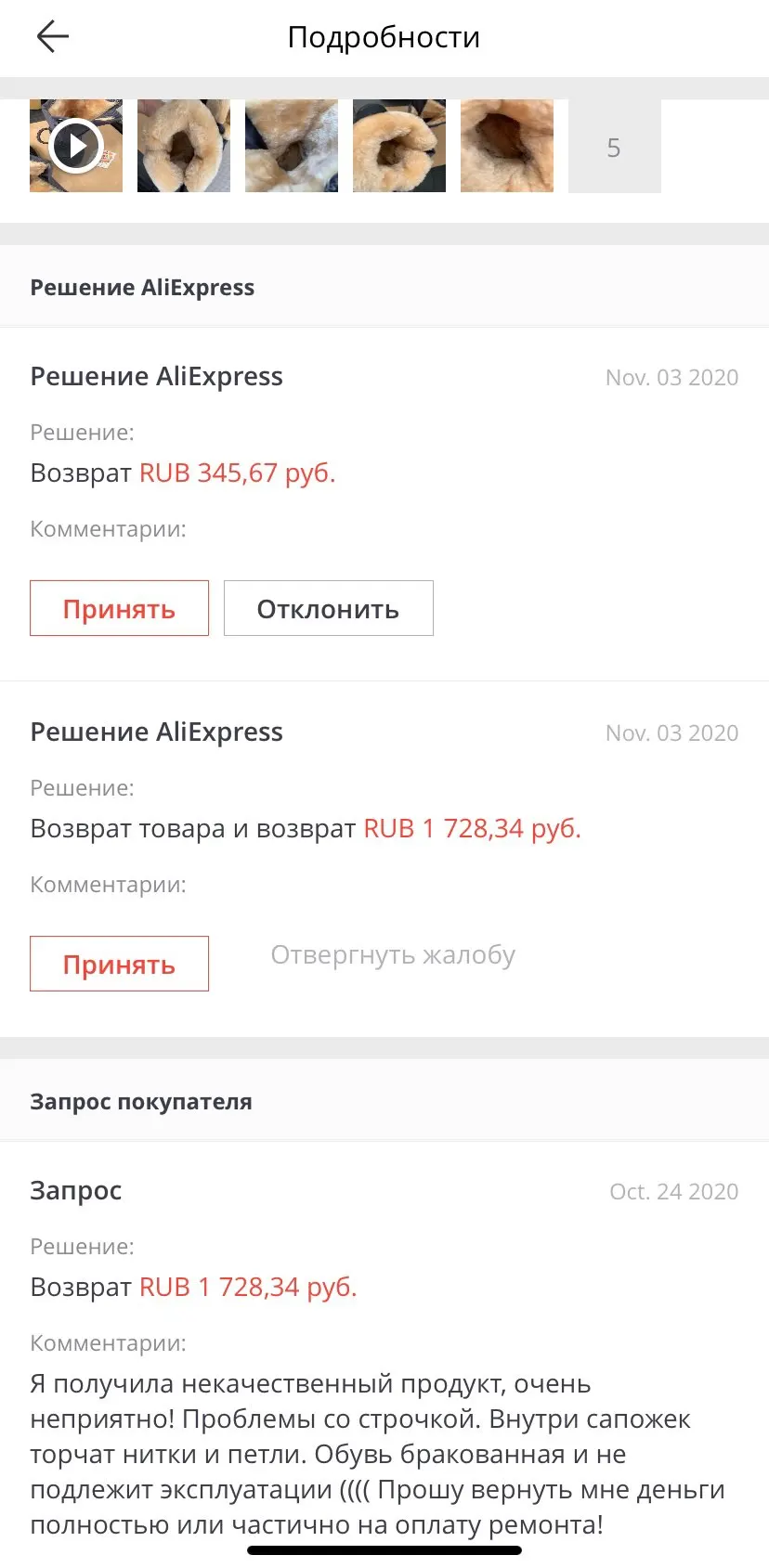 ! ЧЕСТНЫЙ ОТЗЫВ !⠀ ⠀ Доставка до МО больше месяца, отправляли в последний момент. Упаковка ужас, просто бросили в обычный пакет+тонкий почтовый ⠀ ⠀ Худому ребёнку на стопу 17 см по совету продавца заказала р.29 они оказались МАЛОМЕРКИ на 2 размера! Внутренняя стелька у них тоже 17 см. Нога втиснулась с трудом и только на тонкий носок⠀ ⠀ Сапоги получила с БРАКОМ! Внутри петли и нитки. Мех лезет. В ателье за ремонт запросили 800 руб. Открыла спор на полный или частичный возврат денег. Продавец предложил возврат товара. Я отказалась т.к. нет никаких гарантий да и впечатление уже испорчено!⠀ ⠀ Через 10 дней Али вернул мне 345 руб. Это самая неудачная покупка за 2 года! Никому не посоветую и сама больше в этот магазин не вернусь!
