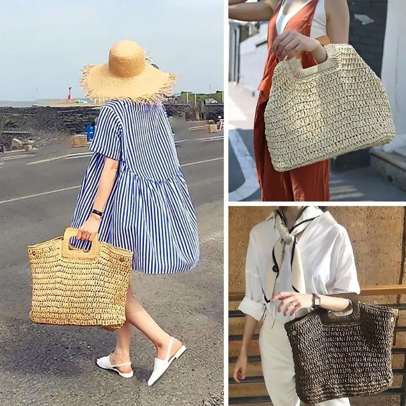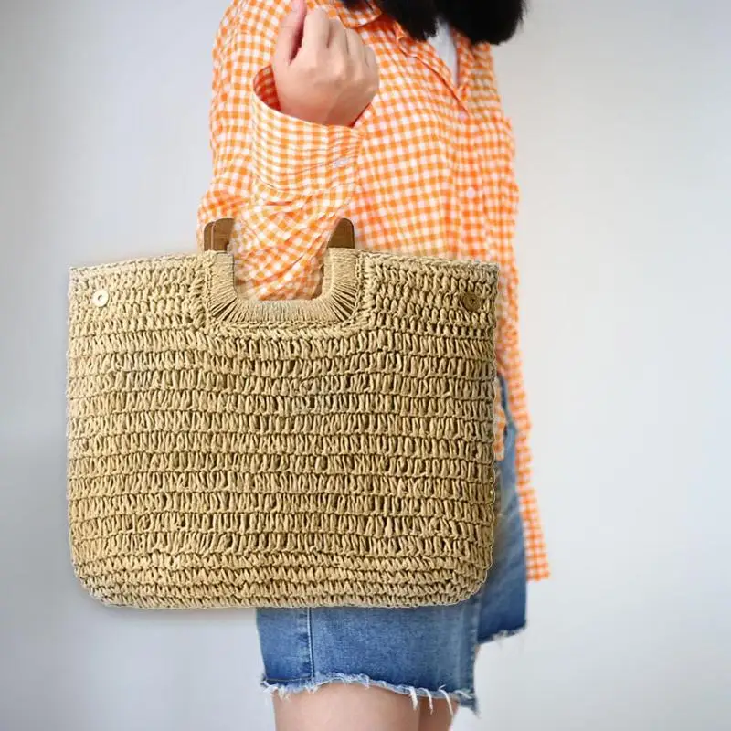 Винтажная богемная Соломенная Сумка для женщин, летняя Большая вместительная пляжная сумка из ротанга, ручная работа, вязаные дорожные сумки Bolsas Mujer