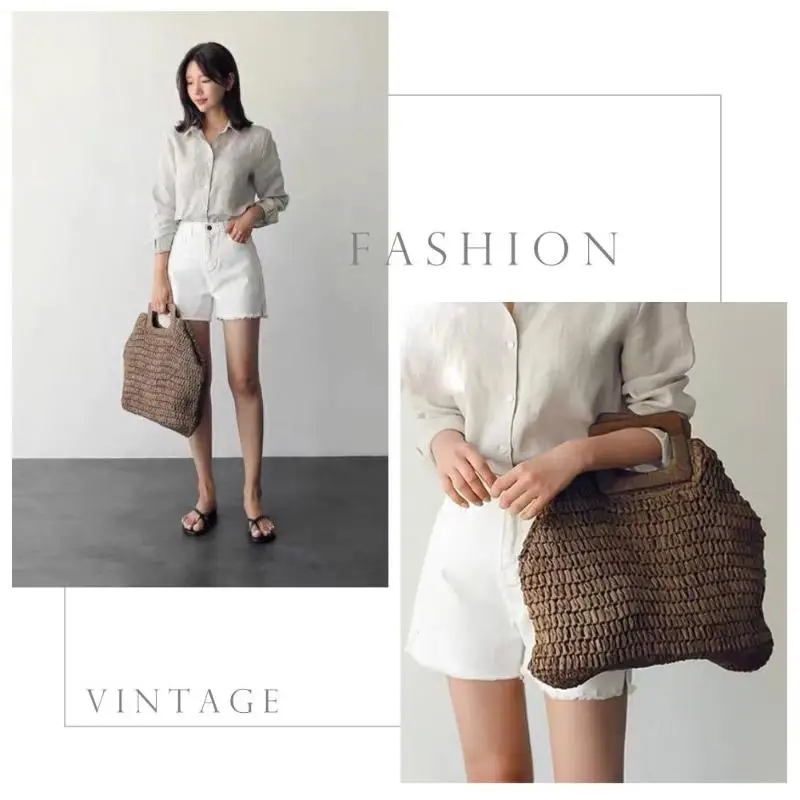 Вместительные женские сумки-тоуты в винтажном стиле, плетеные богем...