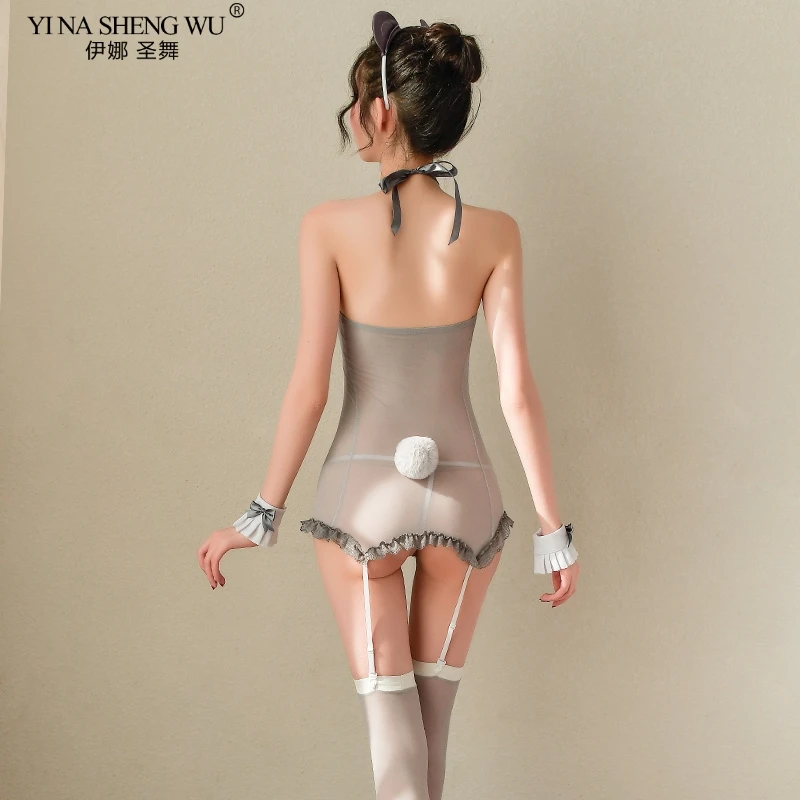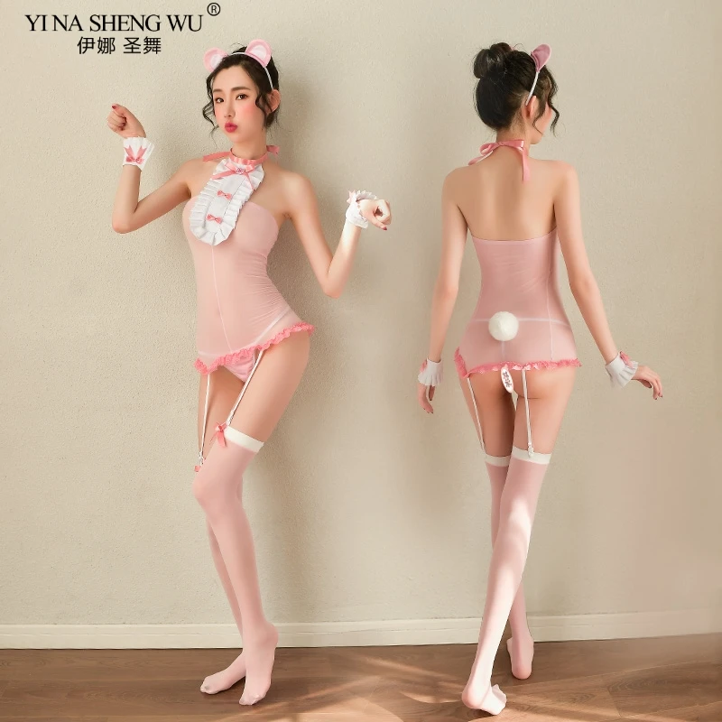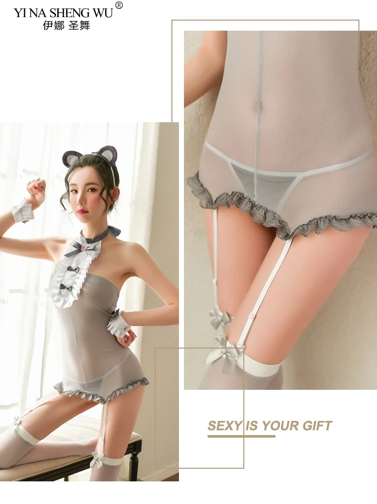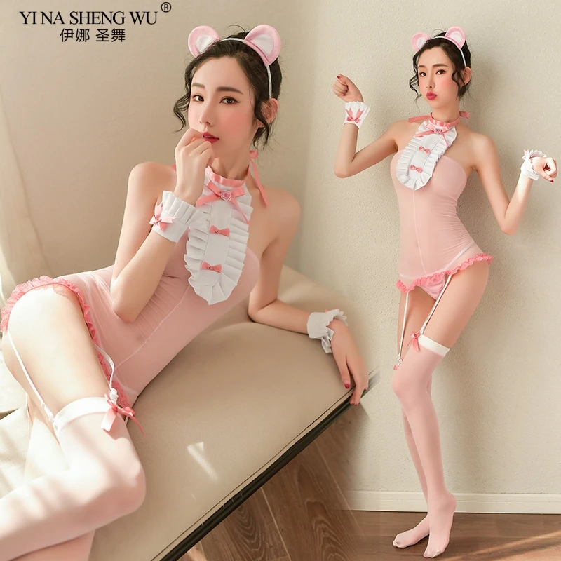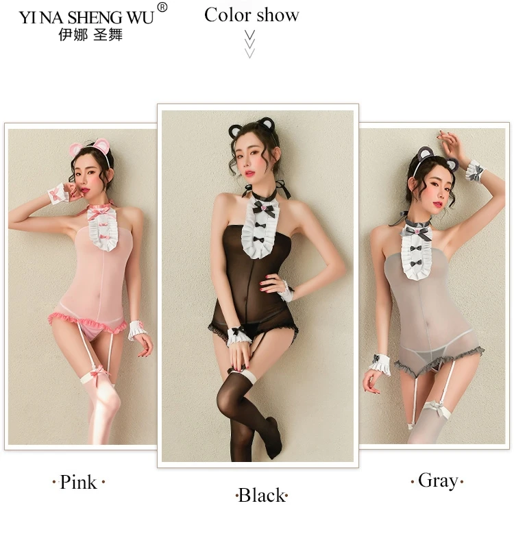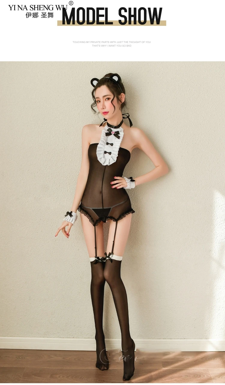 Соблазнительные костюмы для женщин, милая Медвежья горничная, косплей, эротическое нижнее белье, кружевные прозрачные чулки с открытой спиной и повязка на голову SetsKawaii