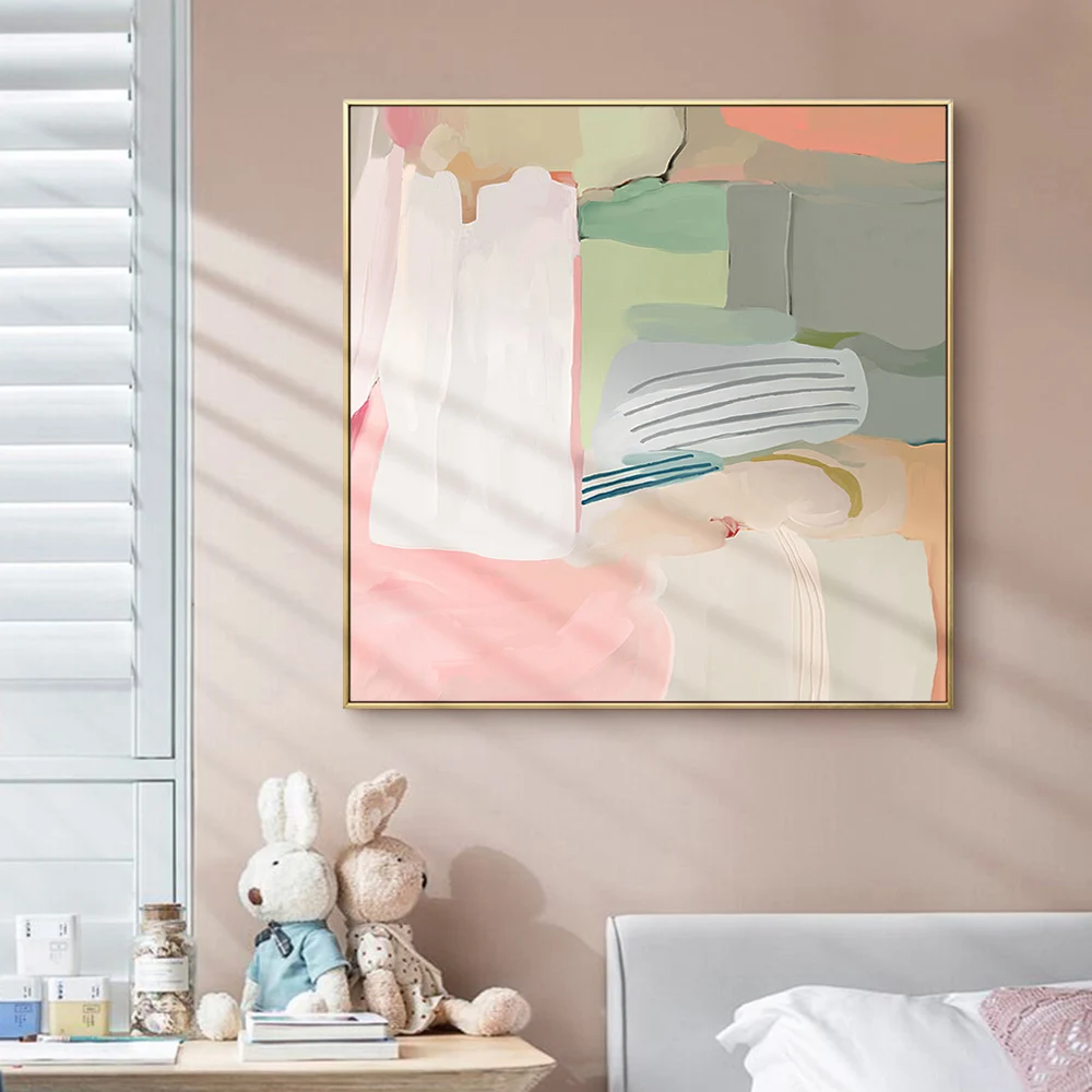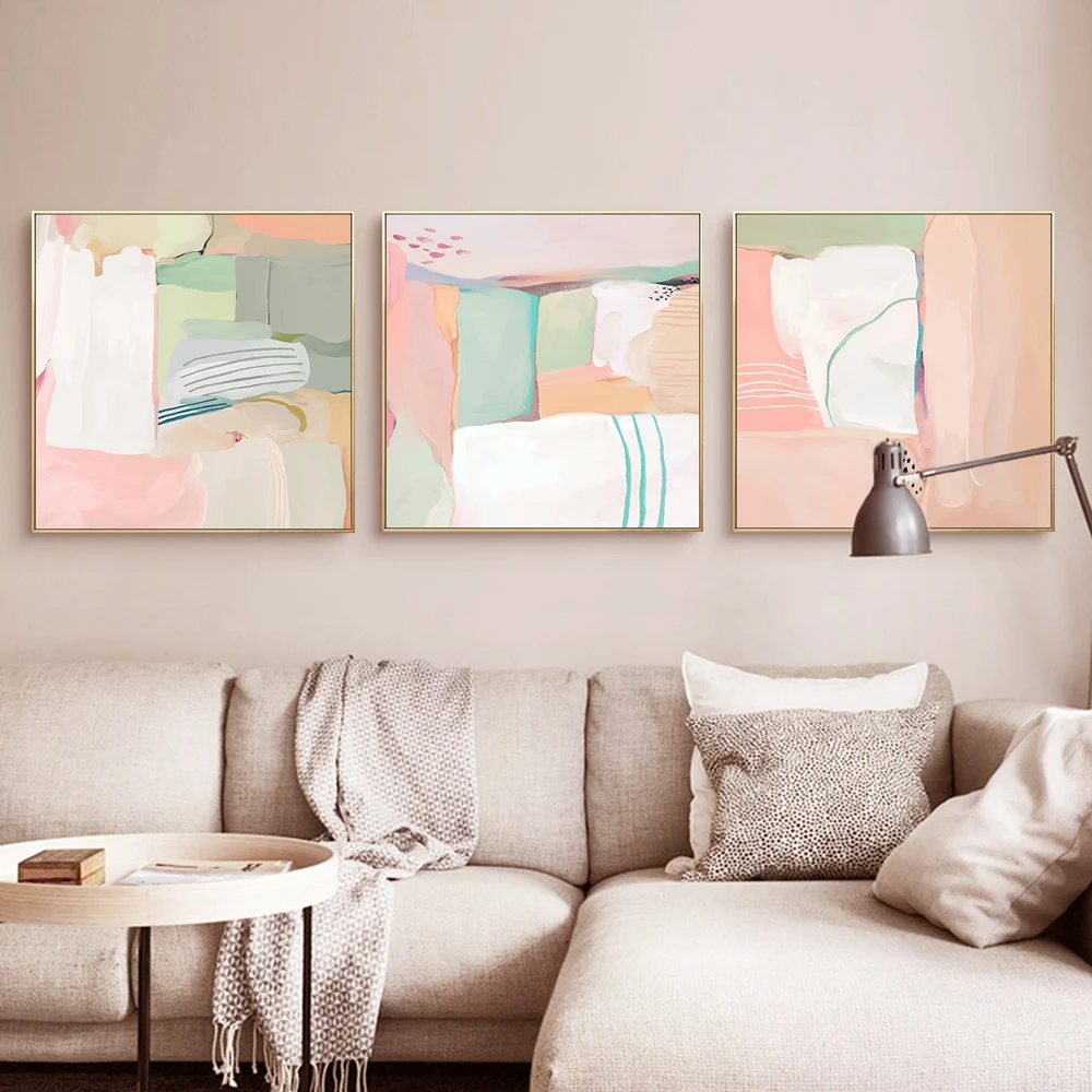 Современный абстрактный настенный постер розового, белого, зеленого цветов, скандинавский настенный художественный принт, холщовая картина, квадратная картина, украшение для дома, гостиной