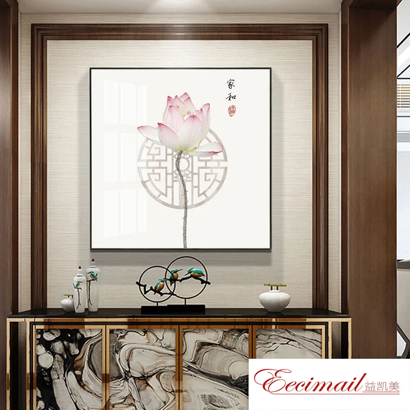 EECAMAIL алмазная живопись розовый Лотос в китайском стиле для гостиной, столовой, алмазная вышивка, украшение для дома, картина без рамки