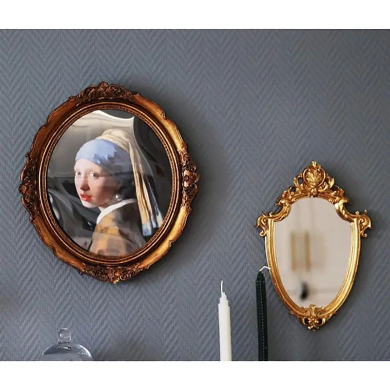Рельефное декоративное зеркало из смолы, зеркало для макияжа, настенное висячее зеркало для ванной, винтажное зеркало для ванной комнаты, подарки