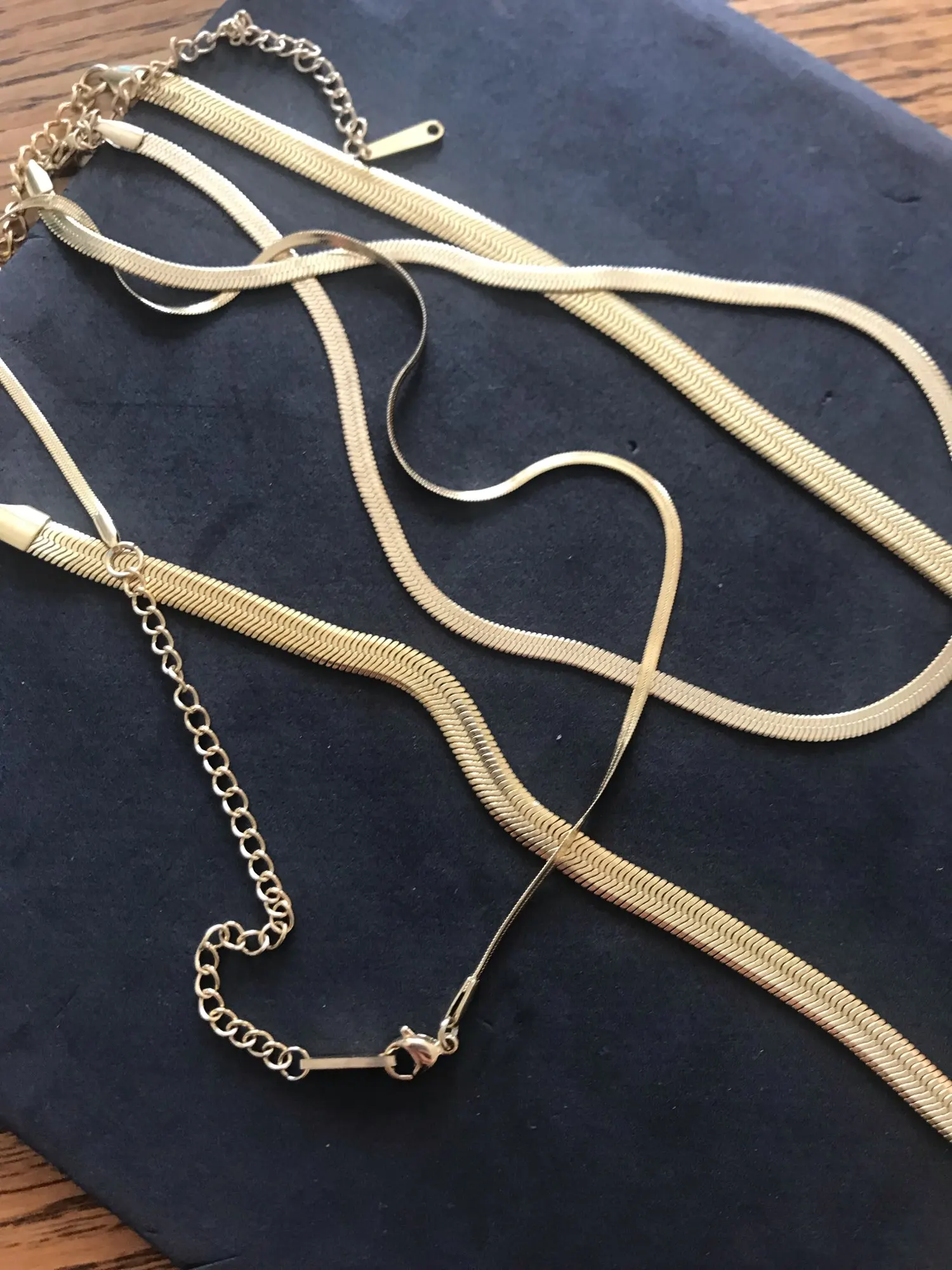 Красивый, отличного качества, и они прибыли очень быстро, я рекомендую покупать этот дешевый и качественный костюм, три ожерелья разных длин, а золотой цвет стали очень красивый, а не желтой таане. Спасибо!