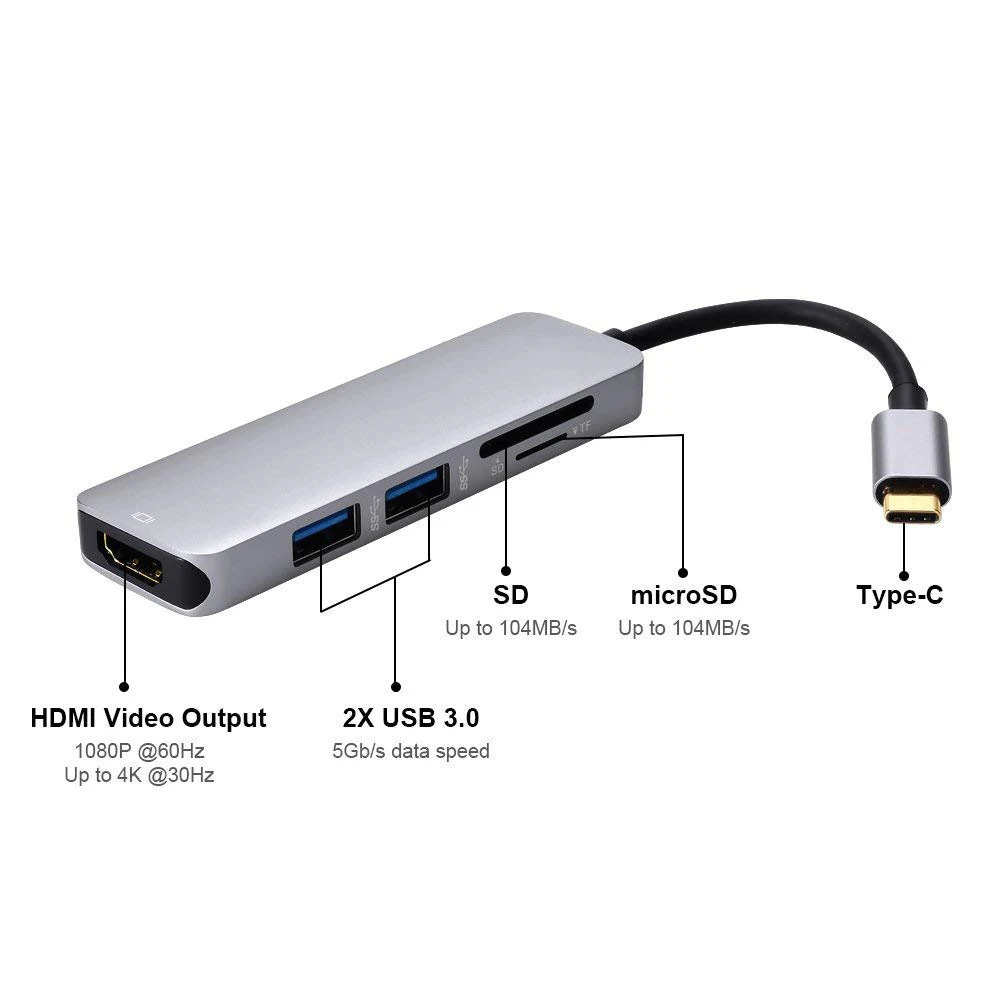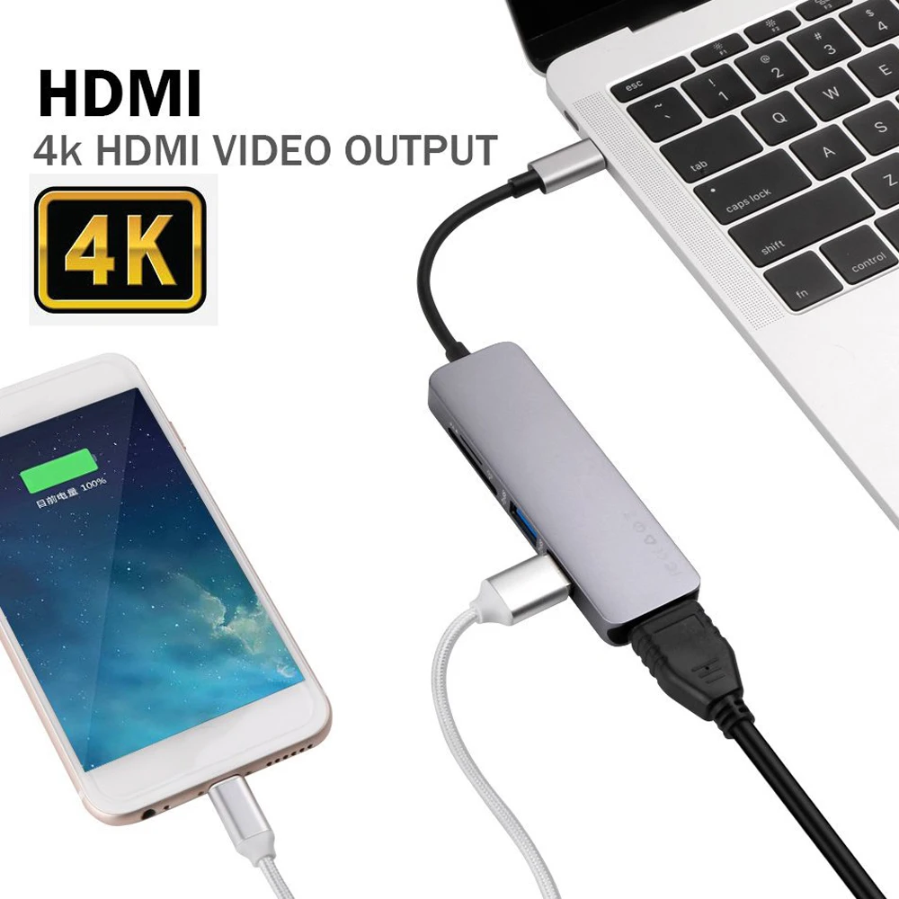 4K 30 Гц 1080P видео выход Тип C Hub адаптер для MacBook USBC к HDMI 2 USB 3,0 5Gbs SD TF слот для карты