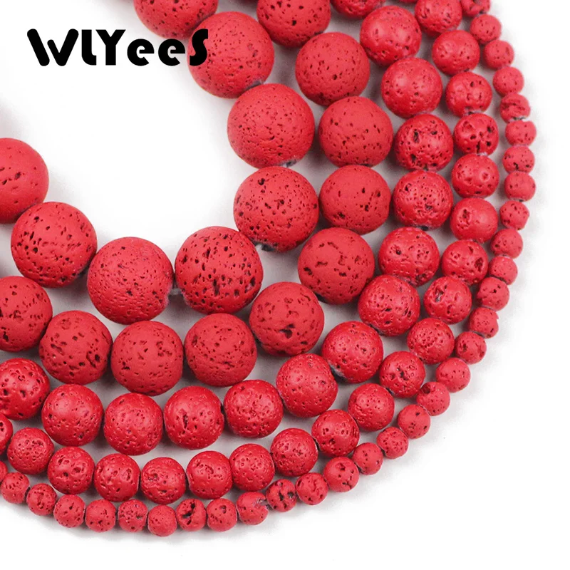 WLYeeS натуральный камень, красная вулканическая лава, бусины россыпью 4, 6, 8, 10, 12 мм, круглые бусины россыпью для изготовления ювелирных изделий своими руками, браслетов