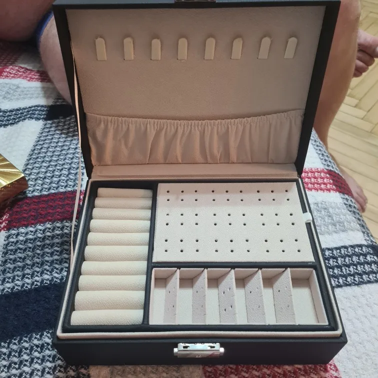 Очень довольна покупкой. За 1300 претензий к качеству нет. Удачно организованы отделения, позволяет разместить украшения разного размера. Посылка пришла в течении 10 дней. Если вы хотите избавиться, от большого количества маленьких коробочек и не тратить время на поиски нужного украшения. Тогда эта шкатулка вам точно подойдёт.