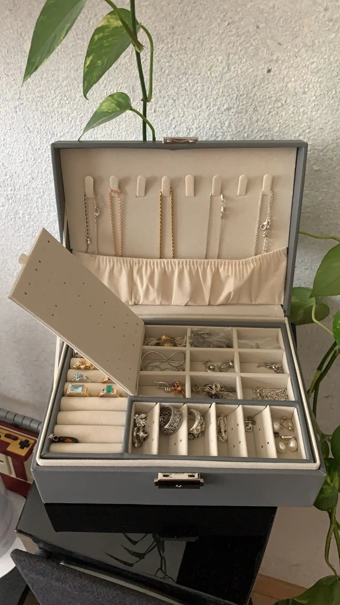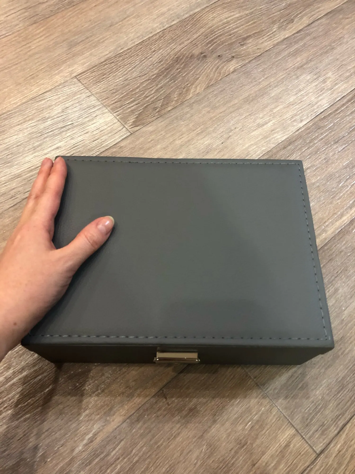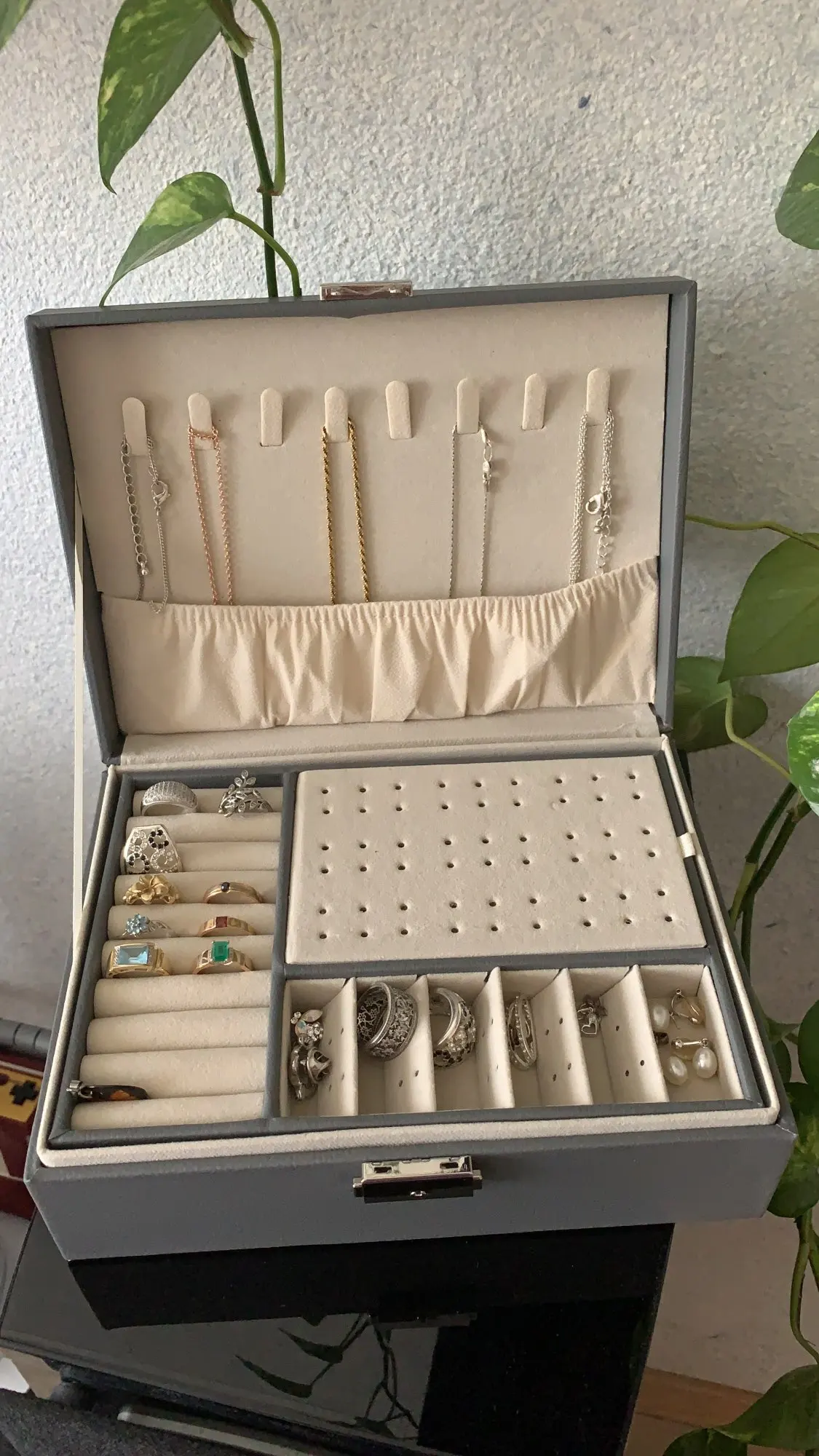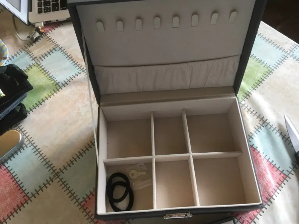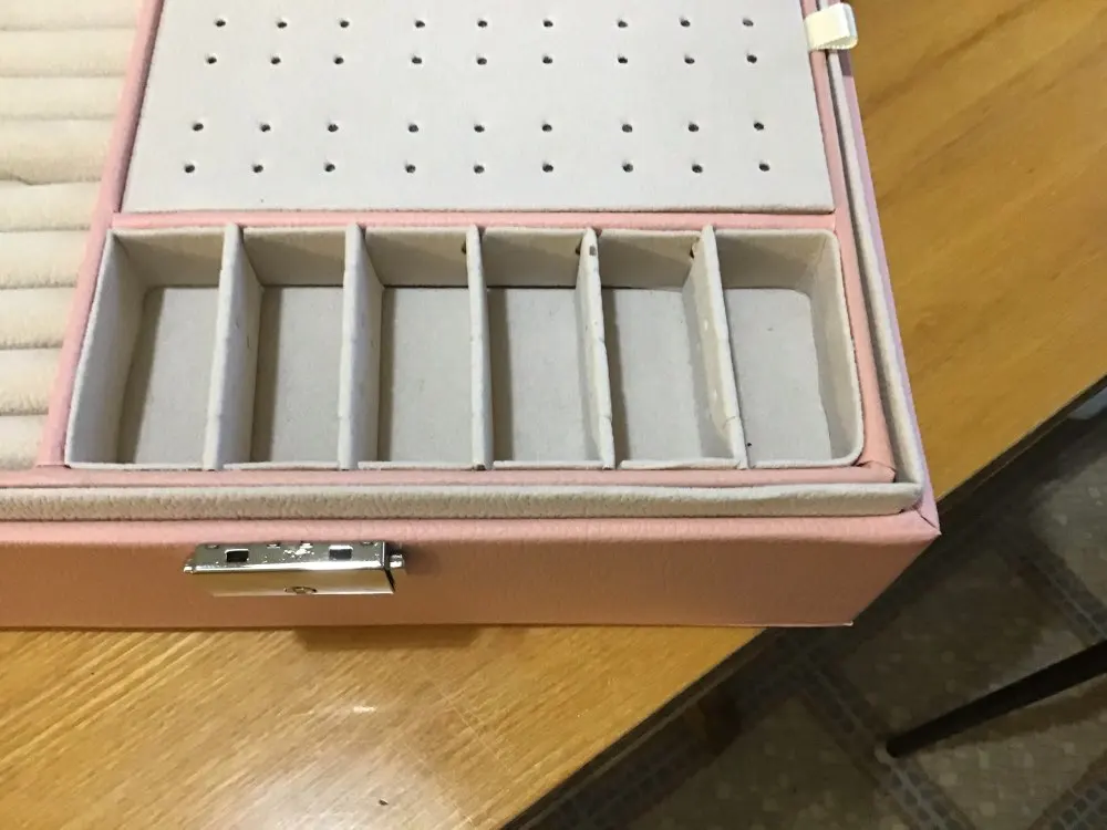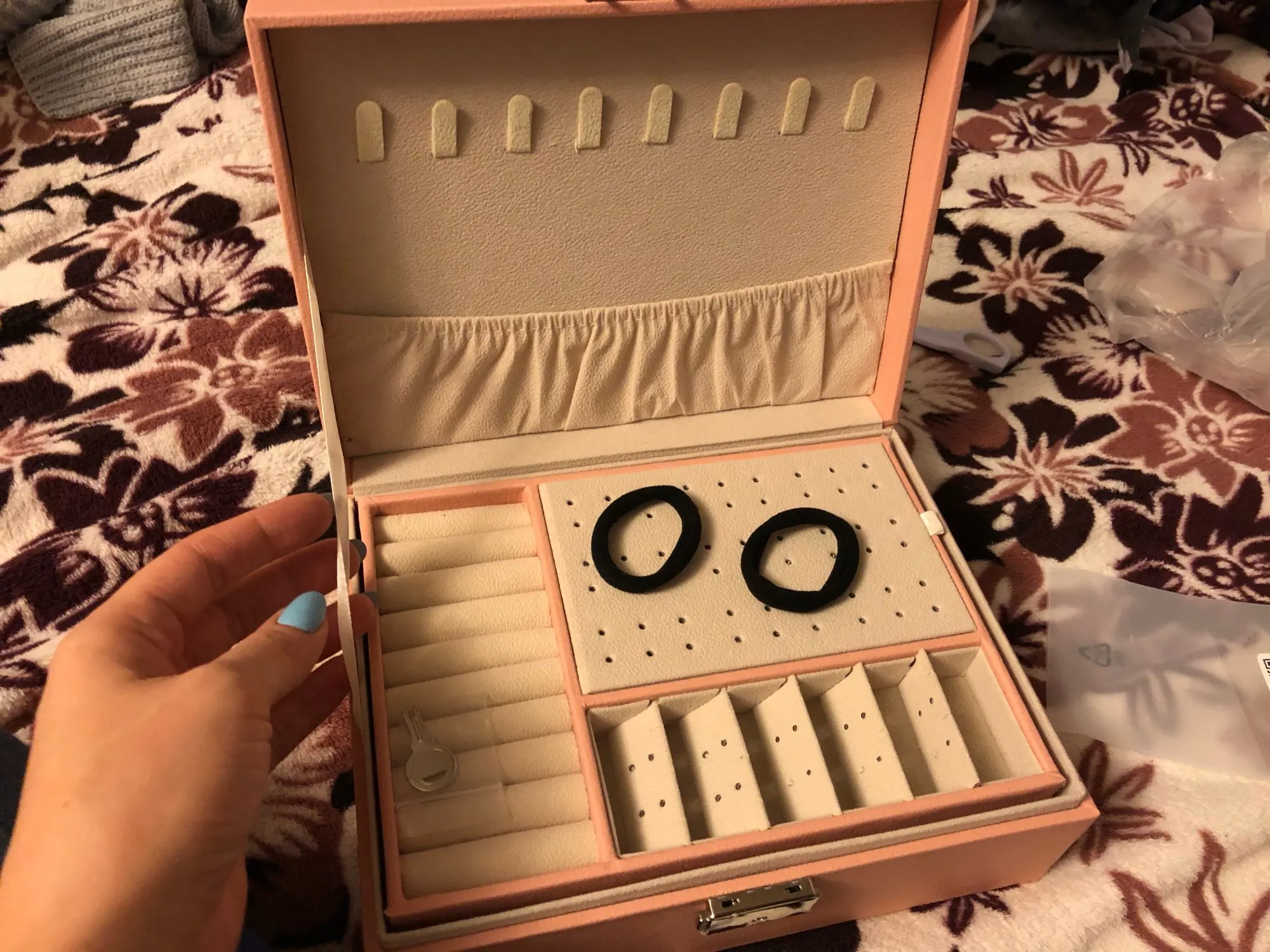 шкатулочка крутая. Очень вместительная. При помощи её освободила 3 шкатулки поменьше. Её огромный плюс- это что у каждого украшения своё место. Но есть и минус- её целостность была нарушена. По-видимому её чем-то придавили во время доставки. Не удивительно! Много видео в интернете как расфосовывают почту.... От этого разошёлся угол и замочек поломался(как видно на фото). Это меня немного расстроило, но сама шкатулка просто шик! Имеется не сильный запах.