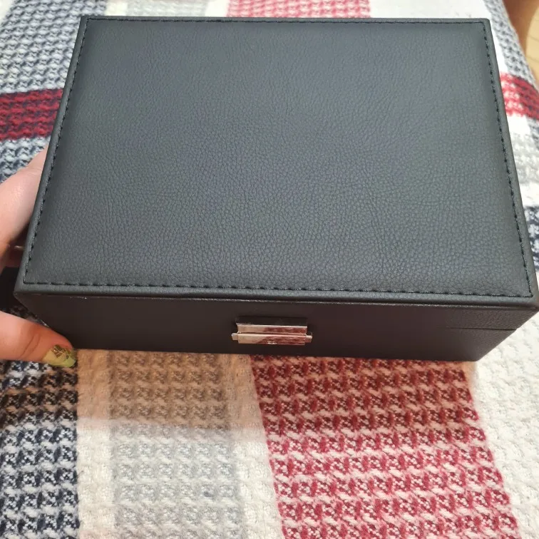 Ну что сказать доставка быстрая. Это из положительного. Шкатулка пришла с дефектом. Кожа с угла треснула, на стыках чёрный клей, кожа вздутая по углам. Воняет ужасно. Вообщем впечатление испорчено. Открыла спор, вернули часть денег. Ну блин очень обидно что за качеством Али не следит вообще.