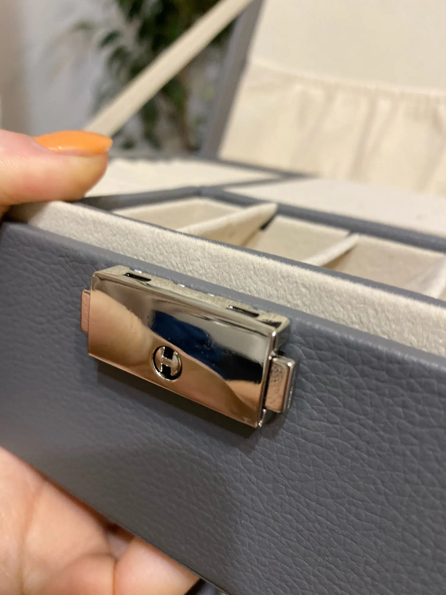 Долго смотрела и не решалась покупать. Но на распродажи 11.11 заказала.Были хорошие скидки и применила купон. Пришла шкатулка в хорошей защите. Нигде не поцарапана и не помята.В подарок продавец положил две резиночки для волос. Вместительность хорошая. Рекомендую и поларить не стыдно.
