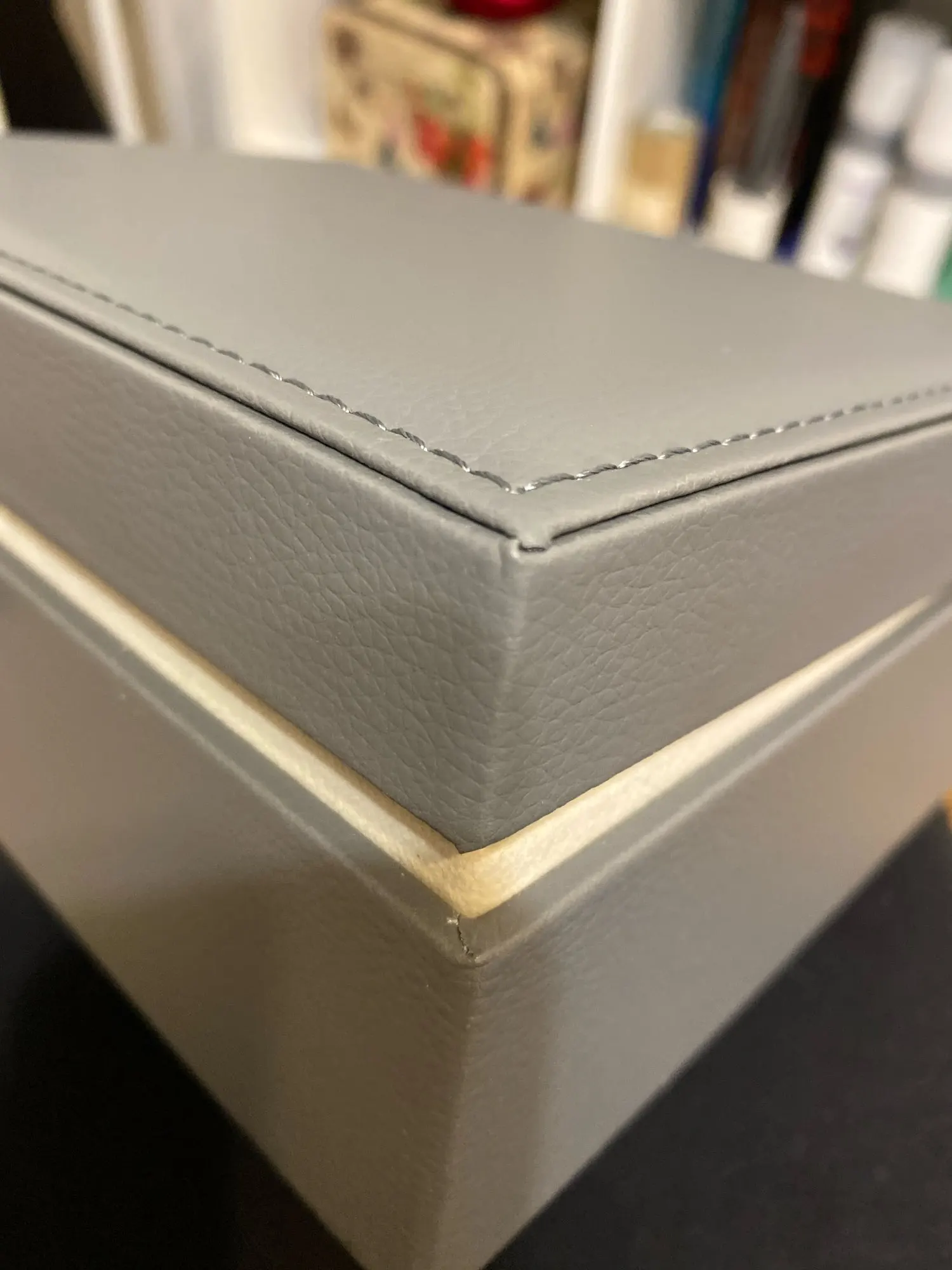 Шикарная шкатулка, пришла достаточно быстро, есть только характерный запах, но она только со склада, чего поделаешь :)) очень удобная, красивая и аккуратно сделанная. Всем советую! Продавец в подарок положил две резиночки :))
