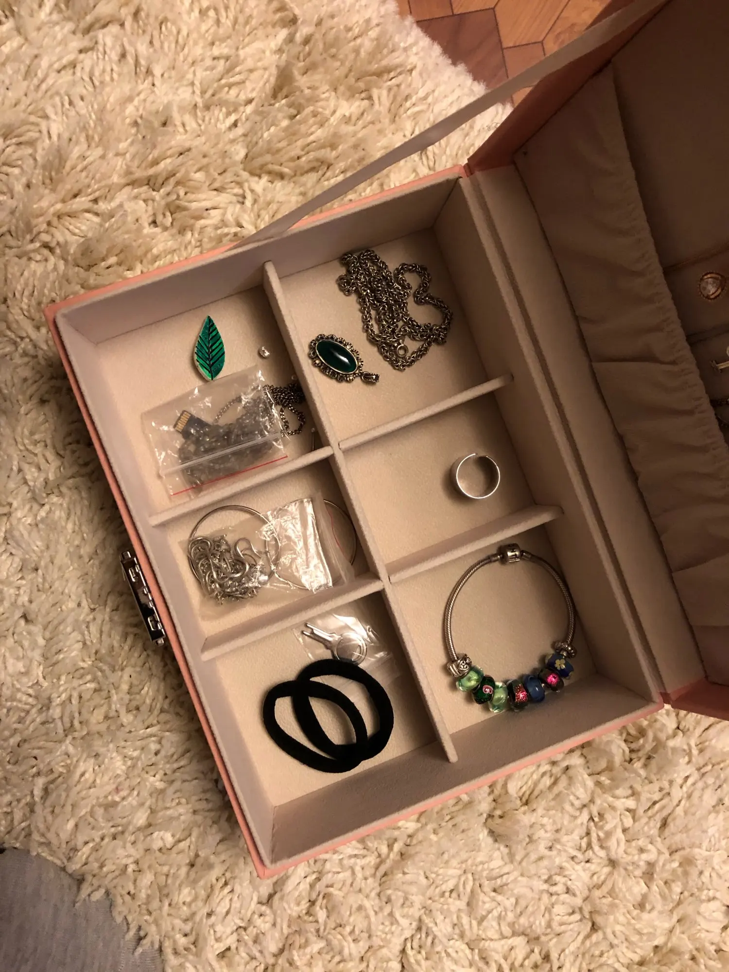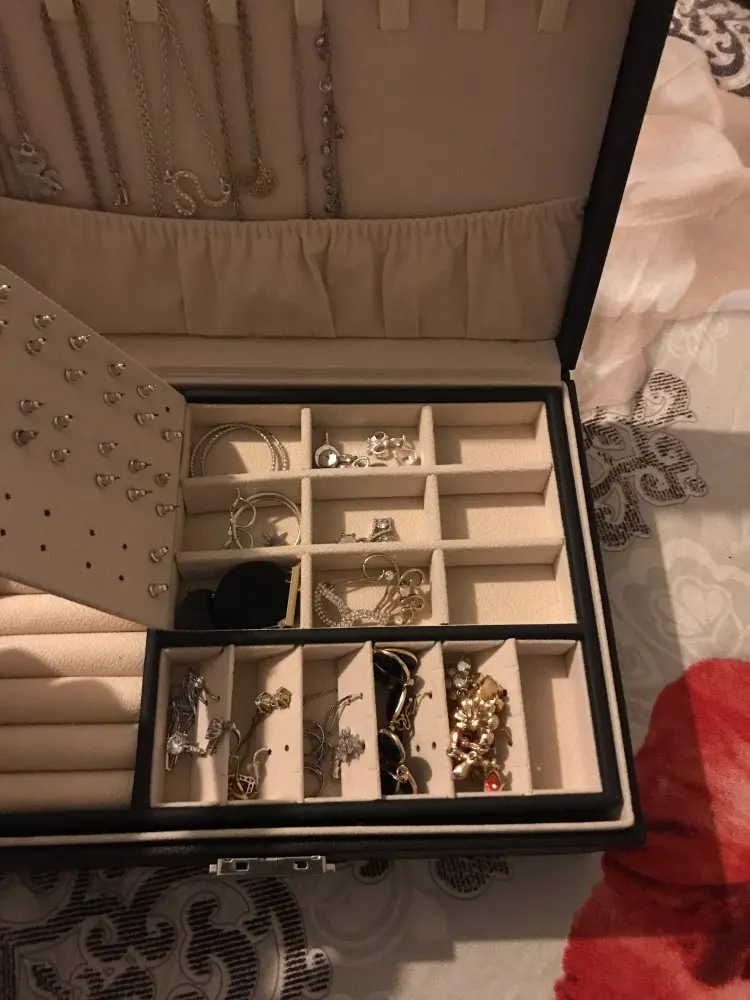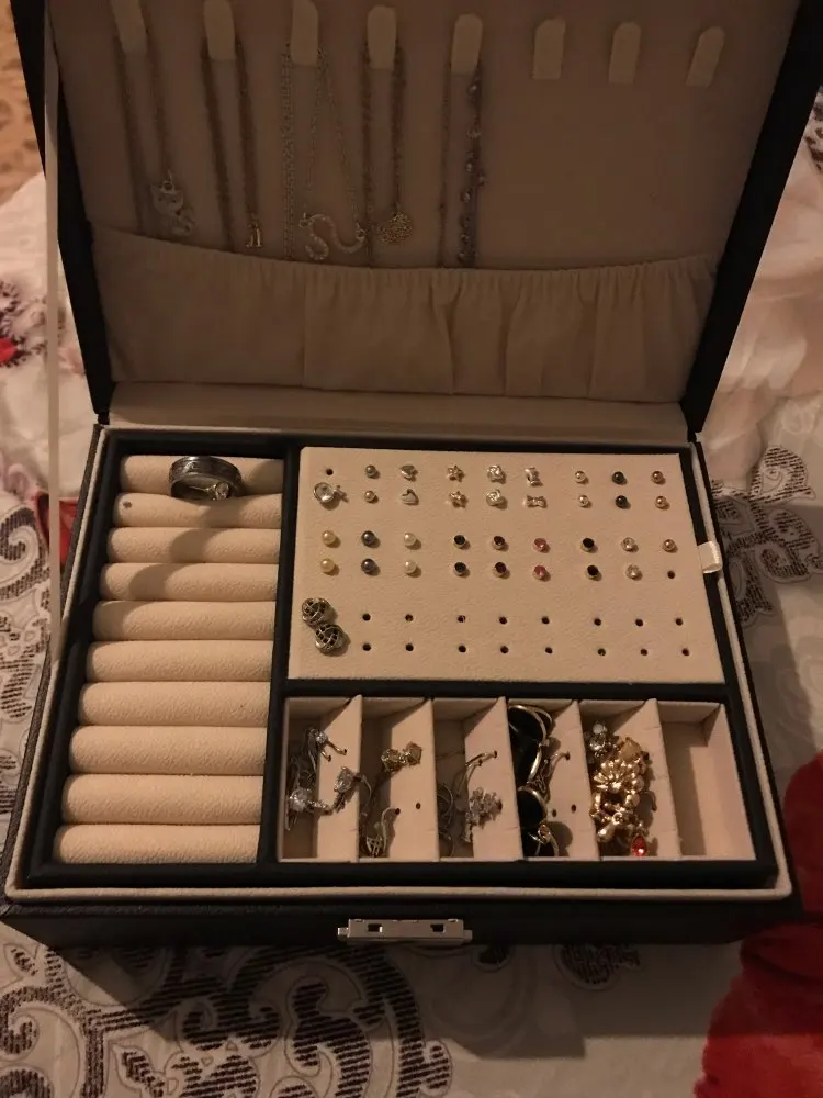 Шкатулкой довольна, все уместилось и ещё место осталось.. Очень много места для гвоздиков, для висячих сережек поменьше, но это не проблема, у меня не так много украшений))