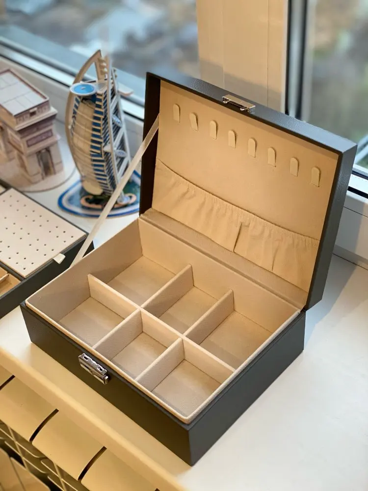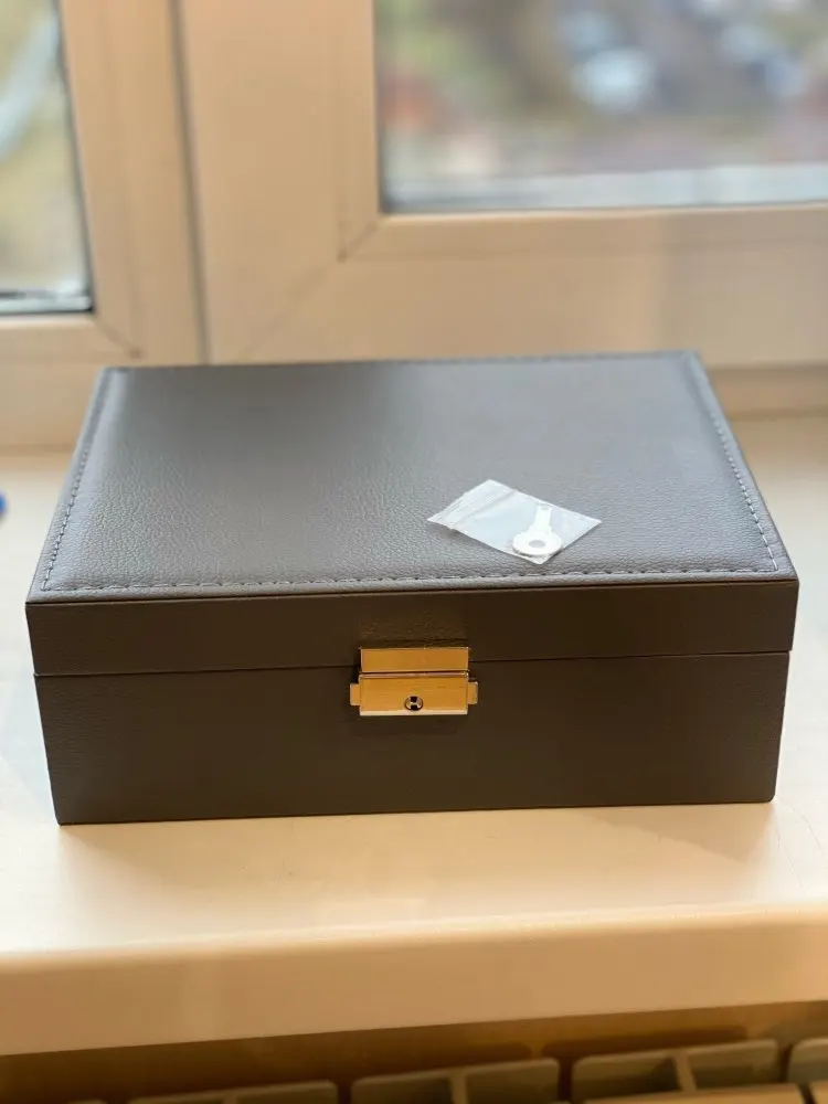 Очень долгожданная коробуля) но пришла быстро, заказала 11.11, пришла 5 декабря. Теперь о самой шкатулке: качественная, вместительная, стильная, даже часы можно положить в самый низ) продавец молодец я ошиблась с цветом, написала ему - отправил тот что надо. Очень советую.