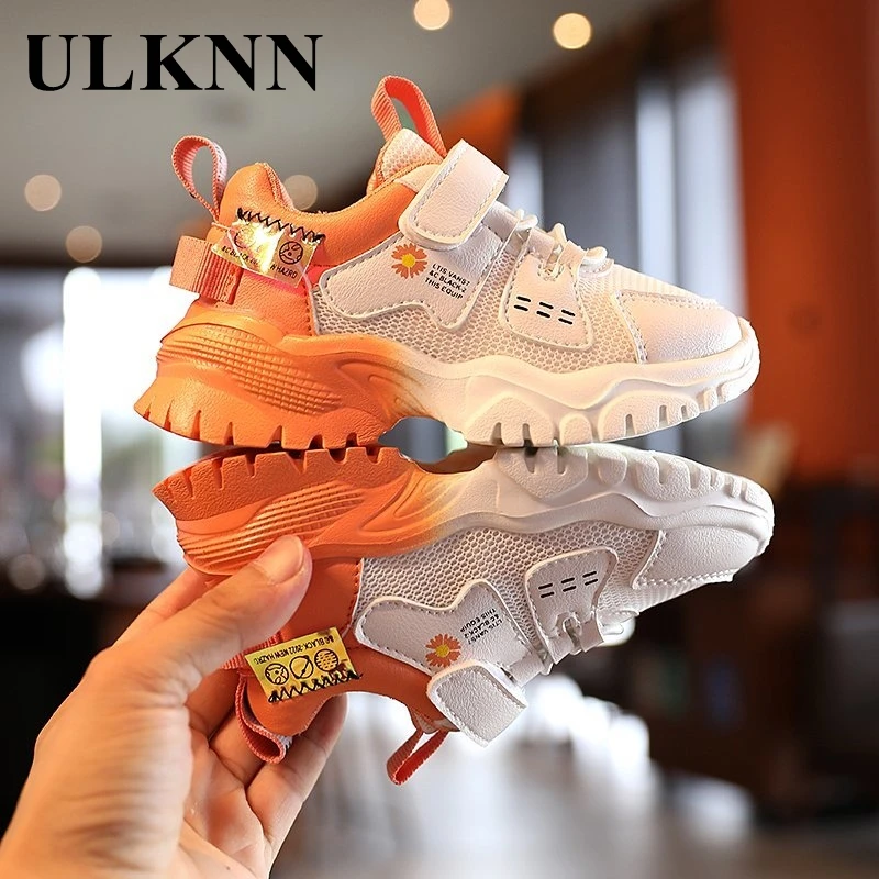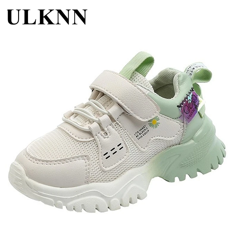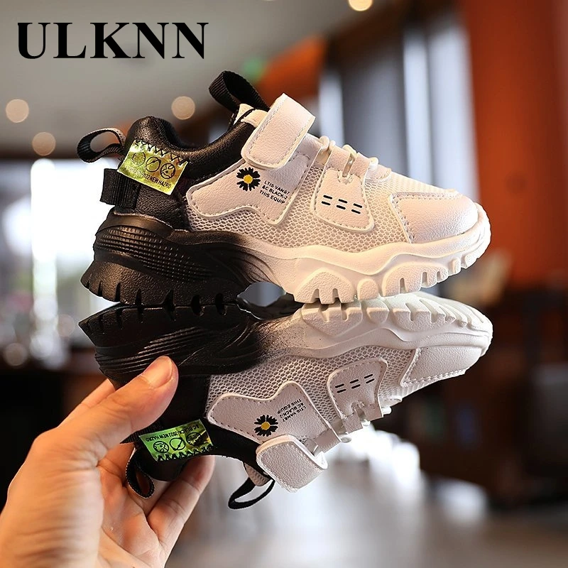 Детская теннисная обувь ULKNN, Новинка осени 2021, спортивная обувь для девочек, дышащая сетчатая обувь для мальчиков, кроссовки белого и черного цвета
