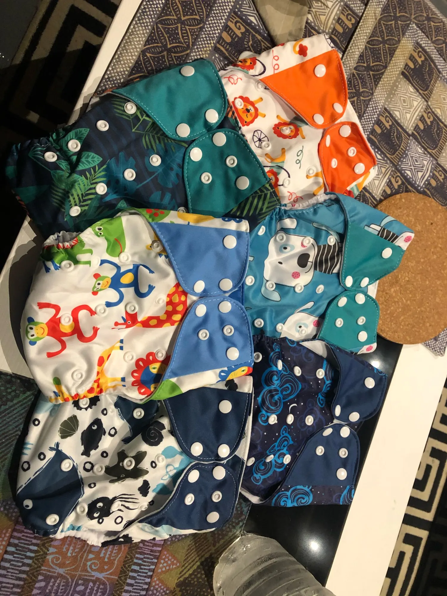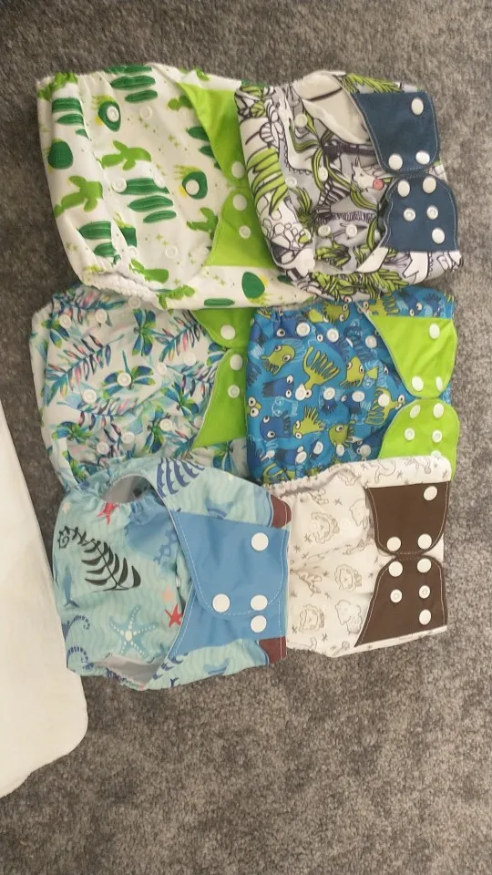Подгузники огонь! Расцветки и нежные, и более яркие. Мы уже заказывали подобные, эти немного отличаются, но не хуже прошлых. Внутренний слой у этих белый,а не чёрный, нет бортиков внутри (возможно, потом это и будет критично, но не сейчас), форма чуть более округлая. Вкладыши мягкие, широкие и длинные, все как надо. Все кнопочки на месте. Доставка супер быстрая, тк из России, прямо к дому. Ребёнку в таких подгузниках комфортно, заодно и со сменой проблем нет, если взять пару таких наборов или отдельно ещё вкладышей. Стираются хорошо, сохнут быстро после машинного отжима. Можно, конечно,и руками, но сохнут дольше в этом случае.