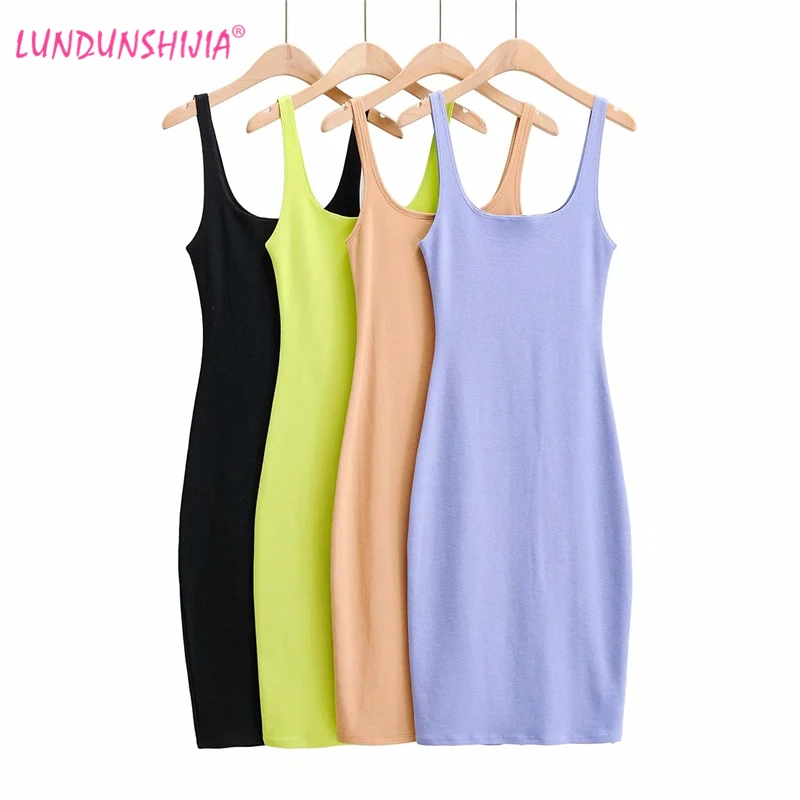 Платье LUNDUNSHIJIA женское длинное на бретелях-спагетти, пикантное облегающее платье-джемпер без рукавов с разрезом, на лето