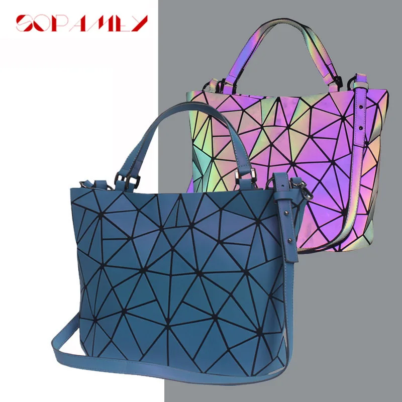 Горячие Роскошные сумки женские светящиеся сумки на плечо большой емкости Женские Геометрические простые складные меховые сумки голограмма bolsos