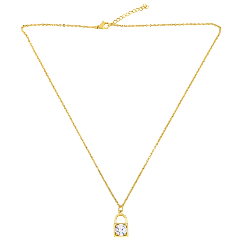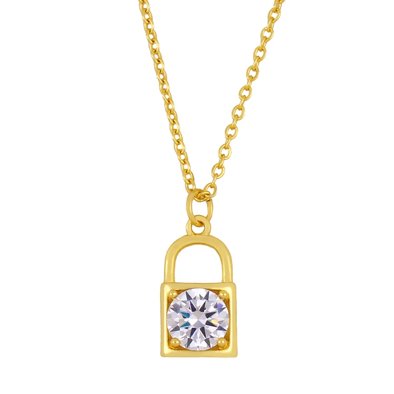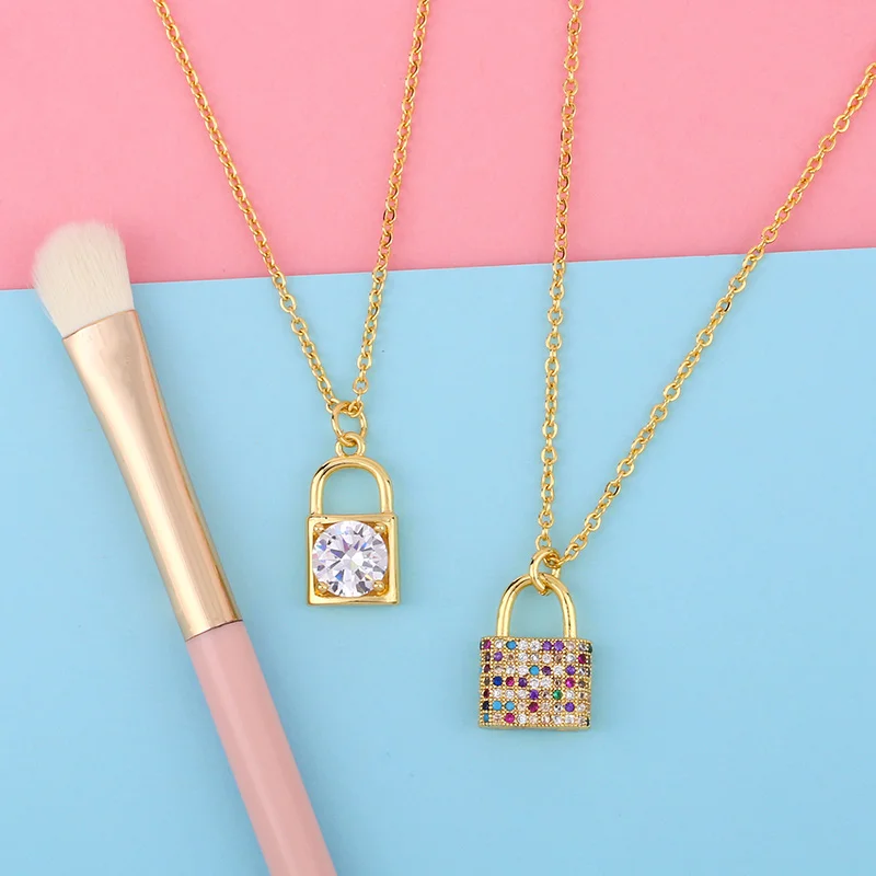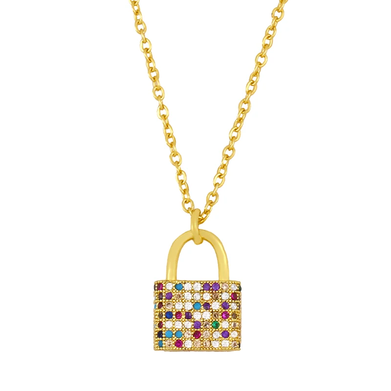 Цепочка с подвеской-замком nker29 женская, ожерелье золотистого цвета с разноцветным кристаллом, радуга, бижутерия, хороший подарок