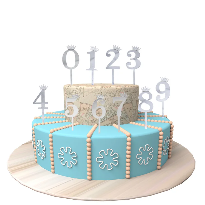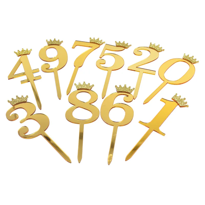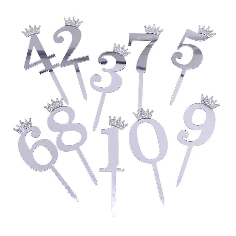 510 шт зеркальная поверхность для торта акриловый номер 0-9 с короной для детей день рождения украшения торта Свадьба годовщина Топпер