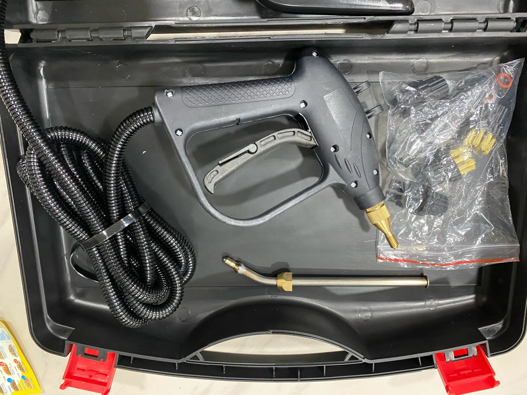 Упаковка очень тщательно. Корейский шнур, поэтому нет преобразователя, и вы готовы к использованию. Верхняя вешалка для пистолета не скользит в течение многих лет, но только коробка для мусора. Попробуйте использовать пар сильным и хорошим.