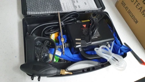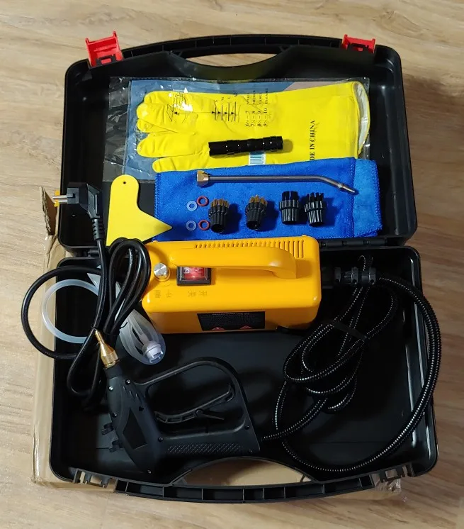 Упаковка товара очень прочная с воздушной подушкой Длинный наконечник сопла для пара, который выходит из места рядом с отверстием Сварка плохо выглядит как показ земли... Пар, чтобы сделать отверстия в воде, входят в заднюю планку крупного рогатого скота, должен был установить термостат на корпусе, никель. Пар очень горячий или по желанию... Во время работы пара для съемки хлопка автоматически останавливает машину и снова-команда для запуска, машина в эксплуатации. Кондиционер очистки для покупки подтолкнули когда на булавке быть хорошо, чтобы позаботиться о том, чтобы больше оставить вместе ~