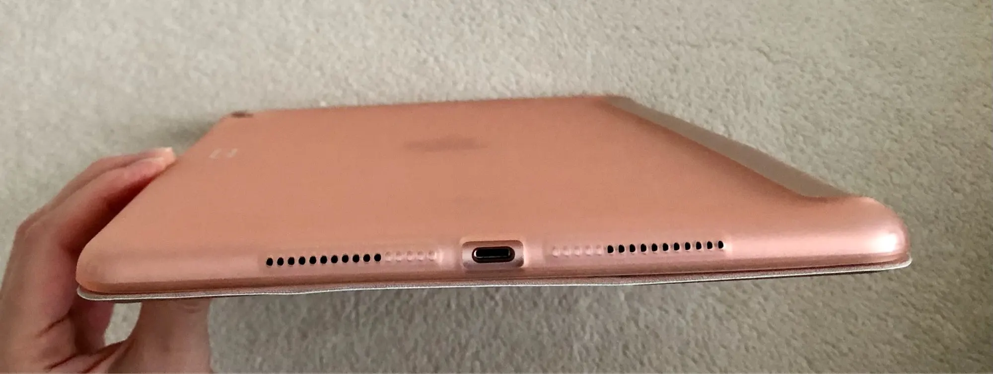 В Минск шёл 2 месяца. Внешне приятный. Упакован был в пупырку, картонную коробку, полиэтилен. Коробка была немного помята, но чехол нормальный. Отверстия на IPad 2017 10’5 совпадают точно, только их больше, чем нужно. Это видно на фото.