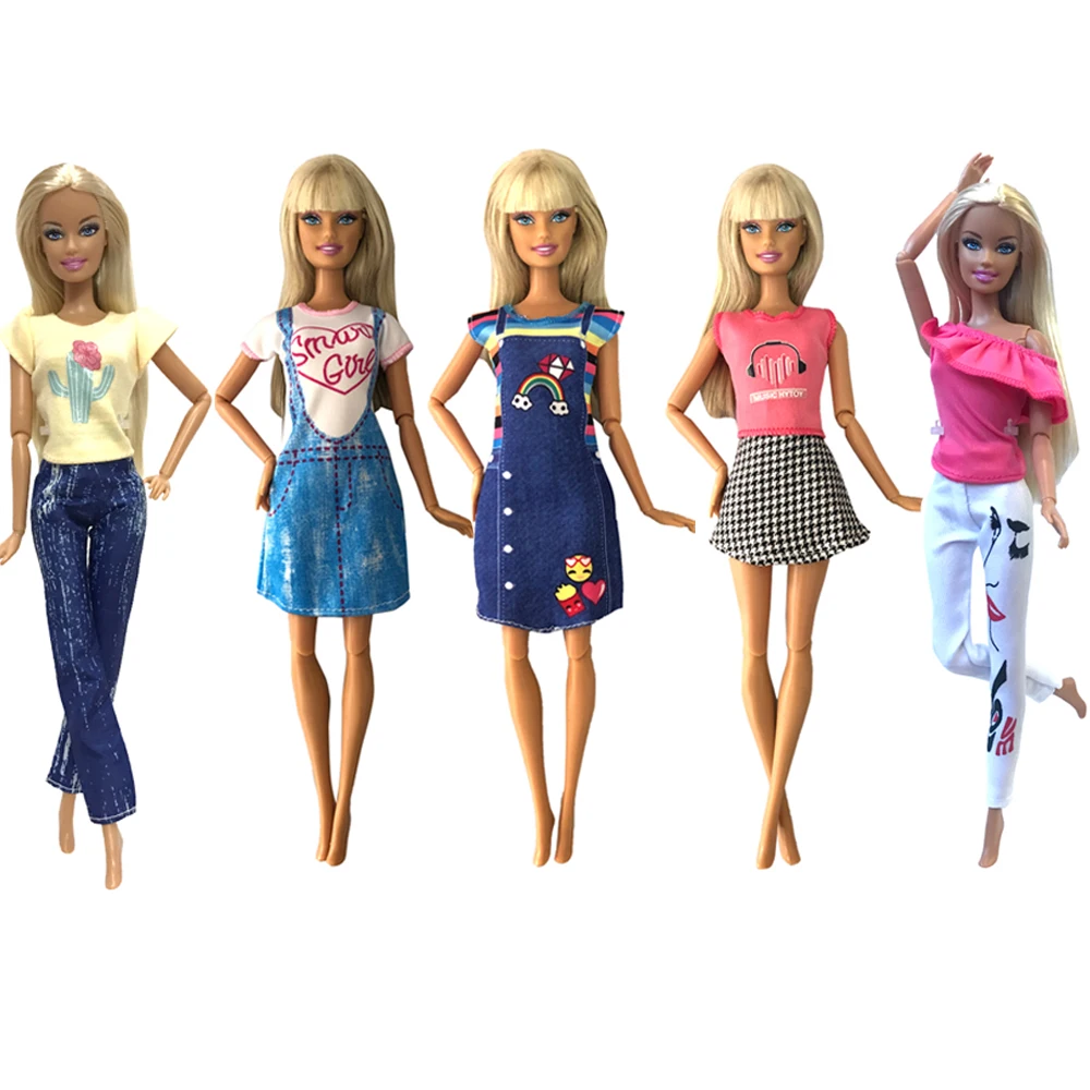 Комплект одежды для куклы Барби NK, комплект из 5 предметов, модная рубашка, штаны, юбка на подтяжках, повседневная одежда, аксессуары для кукол Барби, 25A 7X