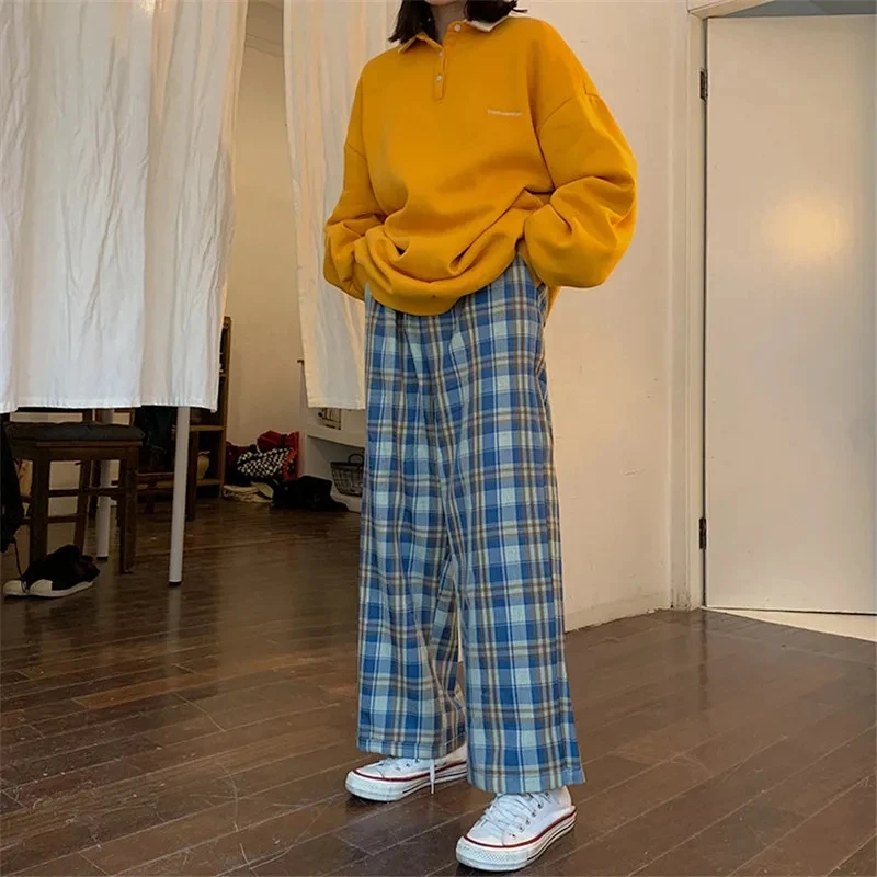 Женские брюки в клетку, широкие клетчатые брюки в Корейском стиле с...