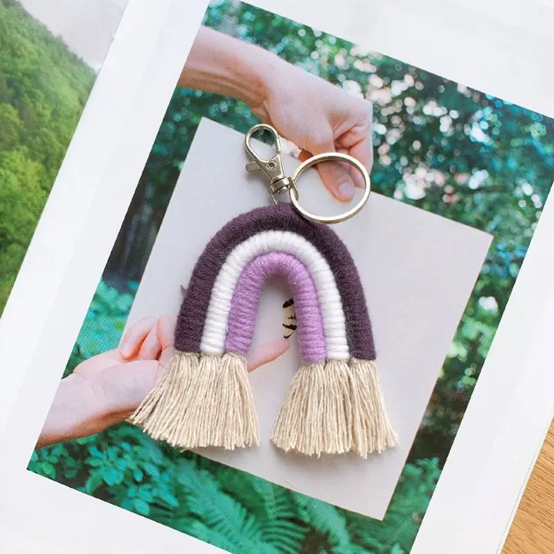 Брелки в стиле бохо для женщин и мужчин, Радужный Плетеный держатель для ключей ручной работы, подвеска для автомобиля в виде макраме, сумки, ювелирные изделия в подарок