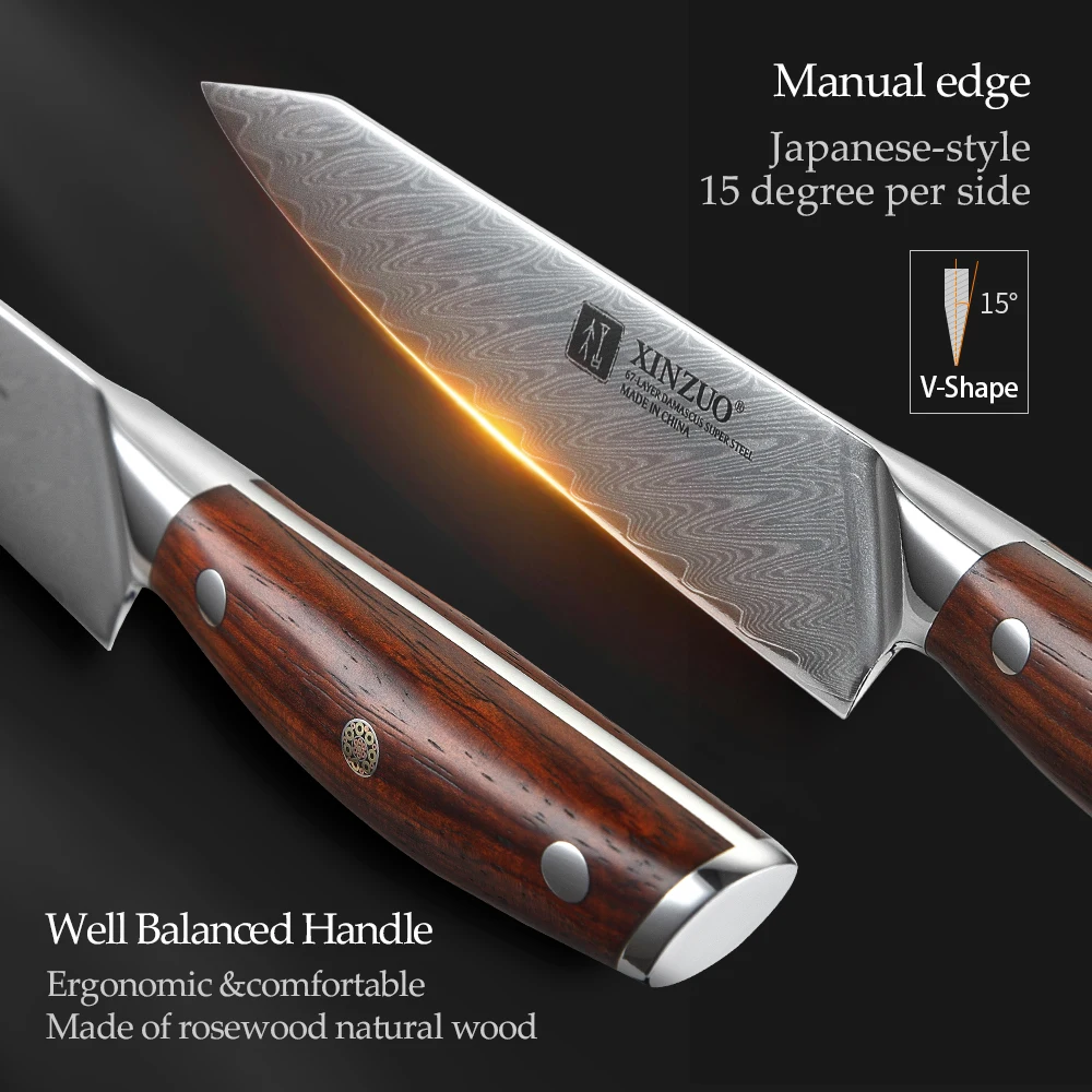 Кухонный нож XINZUO, Многофункциональный кухонный прибор из дамасск...