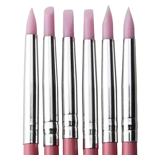 6 шт., резьба по скульптуре, деревянная ручка инструмента Силиконовые кисти для дизайна ногтей, ручки