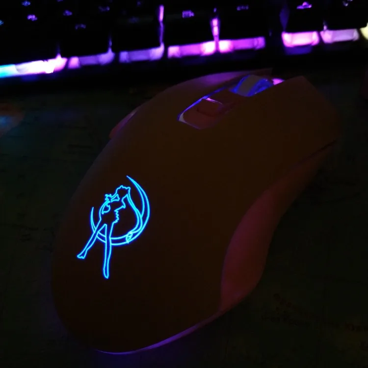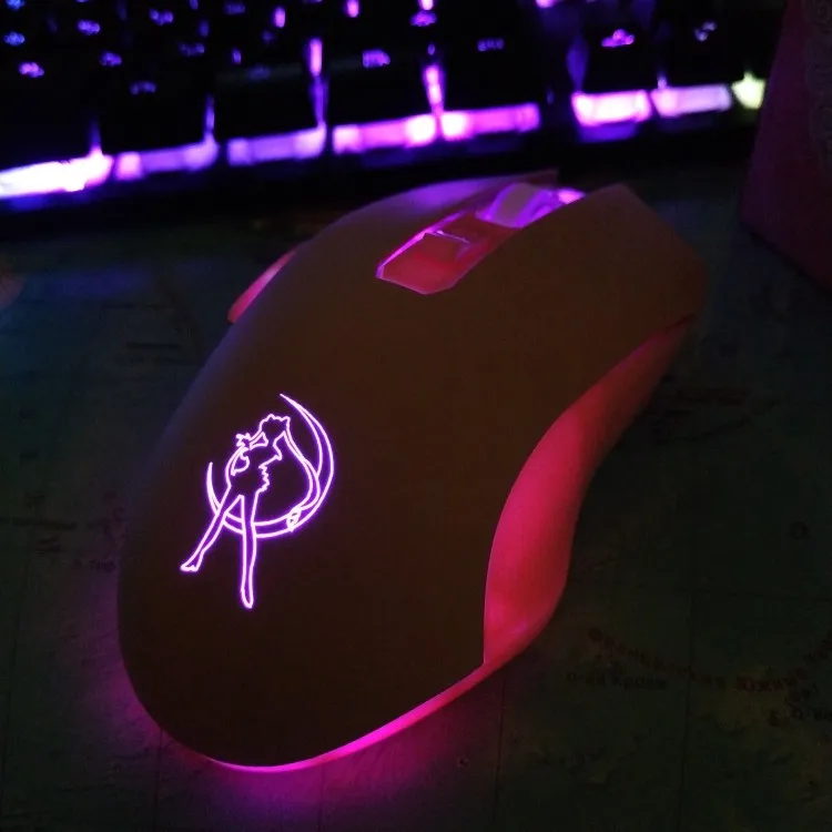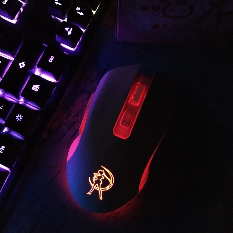 Мышка шла около месяца до Москвы , трек номер отслеживался , несмотря на то, что коробка не была обернута в пупырку , все пришло в целости . Нажатие кнопок достаточно плавное и мягкое , для игры не подойдёт конечно , но выполнять какие-то мелкие рабочие моменты подойдёт . Сейлор Мун горит всегда , если не выключать .