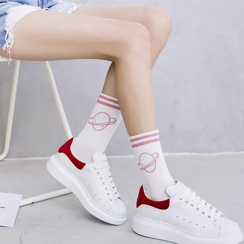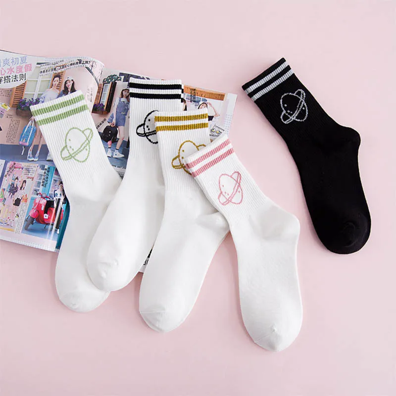Носки женские хлопковые в стиле Харадзюку, Смешные длинные блестящие, с мультяшным принтом, с надписью, плотные теплые носки, белые, Осень-зима