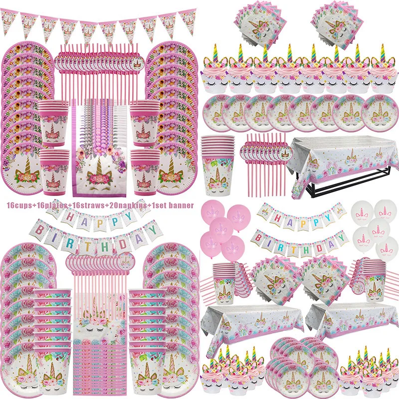 Украшение на день рождения единорог, одноразовый набор посуды, 51-86 шт.