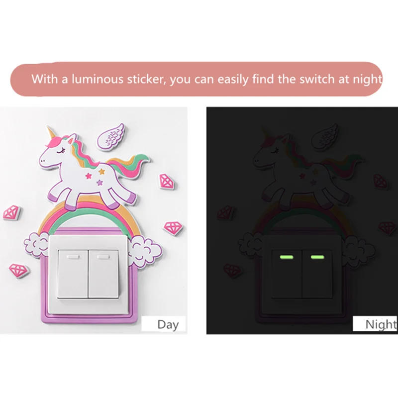Крышка светящегося выключателя в виде животных, единорога, фламинго, 3D декор для комнаты, силиконовая Настенная Наклейка на выключатель