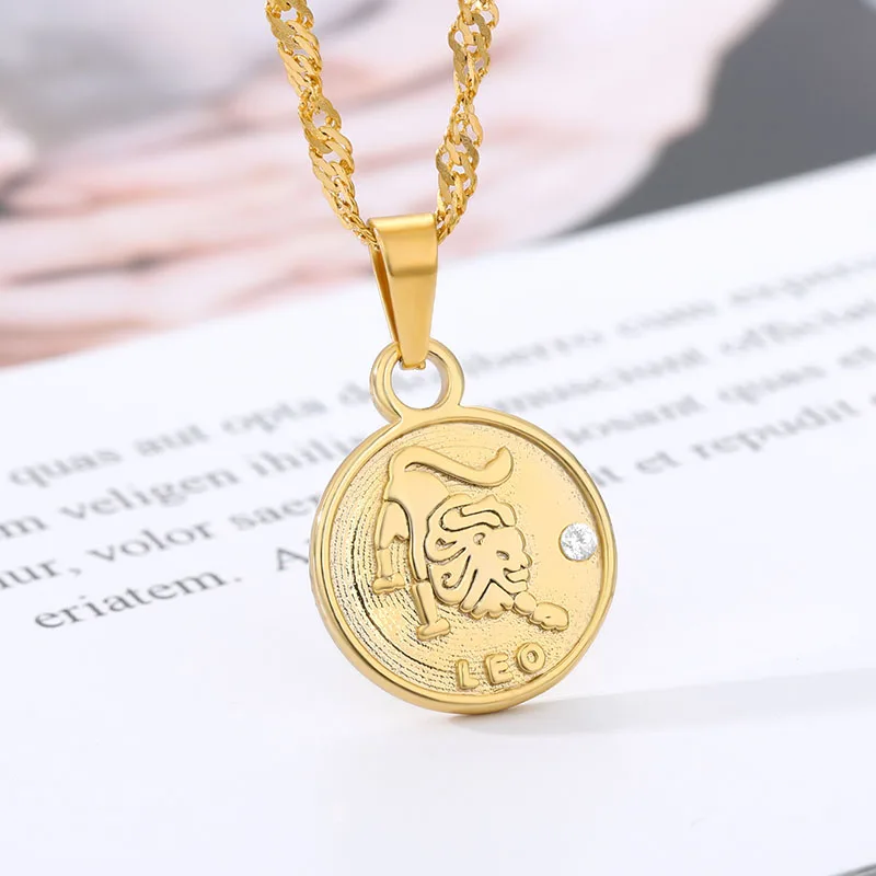 Зодиакальные ожерелья для женщин, ожерелье с монетами, Овен, Лев, к...