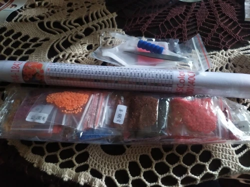 Алмазка пришла в общей посылке на Новую почту где-то за 3 недели. Упаковано хорошо, все стразы в индивидуальном зип пакете с номерами. Набор имеет полную комплектацию, в которой имеется и пинцет. Продавца рекомендую.
