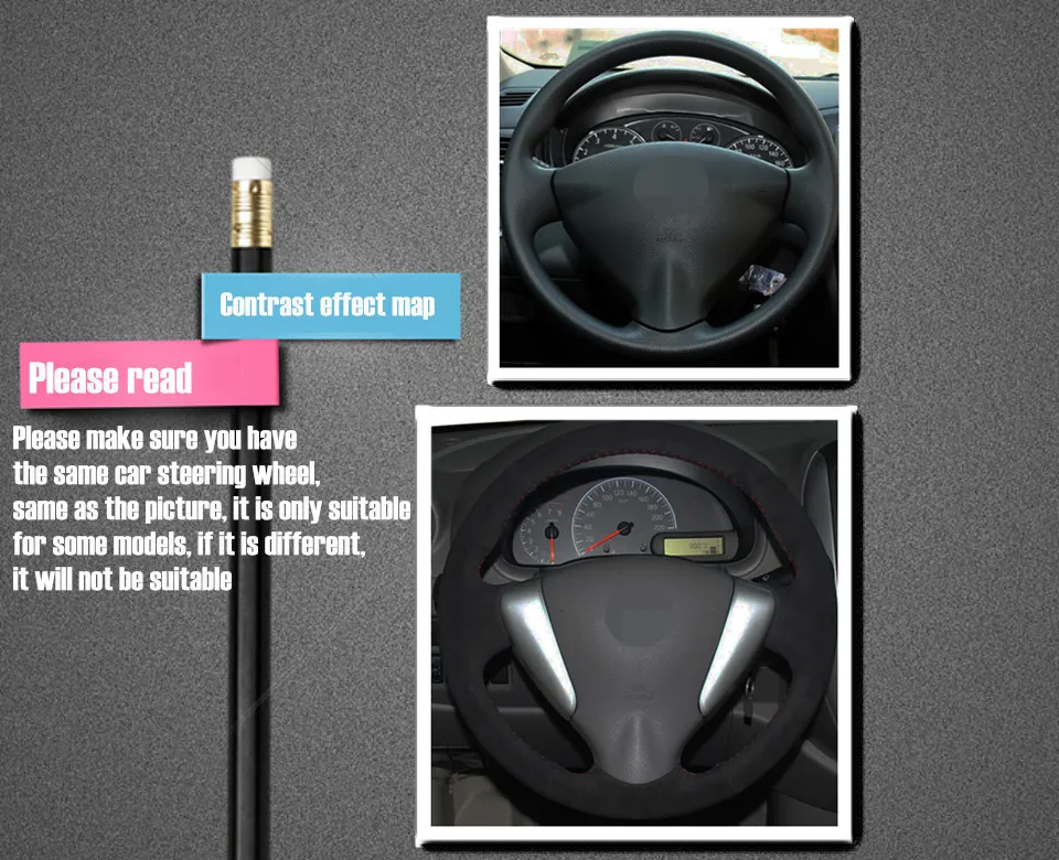 Для Nissan Versa 2019-2015 Versa Note 2018-2014 Tiida Sylphy 2015-2012 чехол рулевого колеса автомобиля черная износостойкая замша