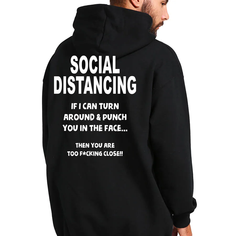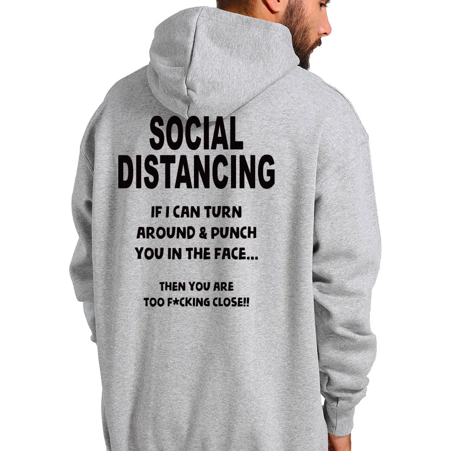 Социальное дистанцирование толстовки забавные изоляции с воротом, с принтом букв толстовка черного цвета с длинными рукавами бархатная теплая мягкая куртка с капюшоном